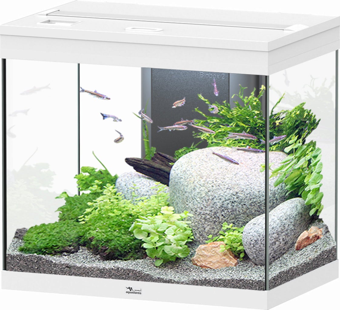 Nota: El tanque y la tecnología están diseñadas para usarse únicamente con agua dulce. El mueble sobre el que se apoya el acuario debe tener unas dimensiones de al menos 60/40 cm (L/D), la altura es variable. Sin embargo, es importante prestar atención a la capacidad de carga y a la robustez de los muebles para garantizar un hogar estable para los peces y otros animales del acuario.