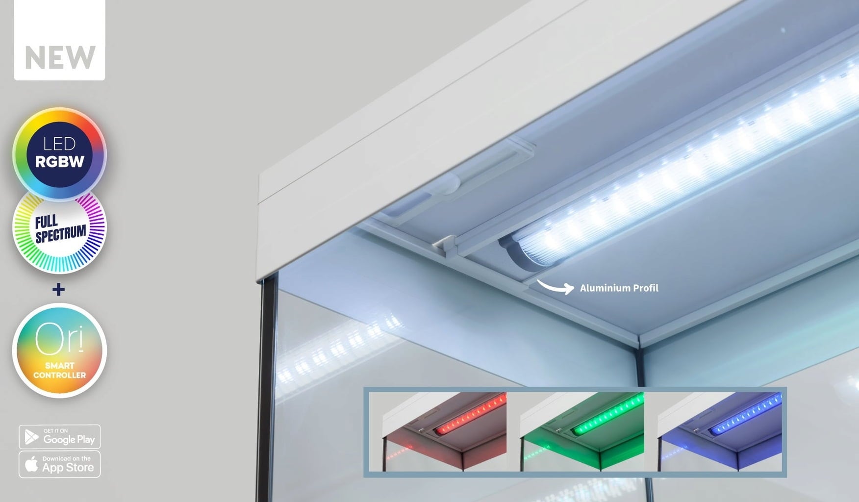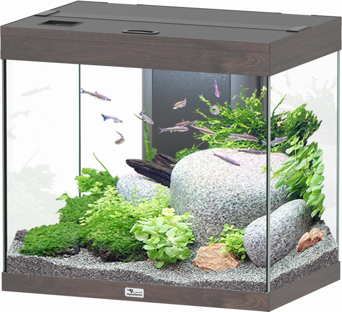 Nota: El tanque y la tecnología están diseñados para usarse únicamente con agua dulce! El mueble sobre el que se apoya el acuario debe tener unas dimensiones de al menos 60/40 cm (L/D), la altura obviamente es variable. Sin embargo, es importante prestar atención a la capacidad de carga y a la robustez de los muebles para garantizar un hogar estable para los peces y otros animales del acuario.