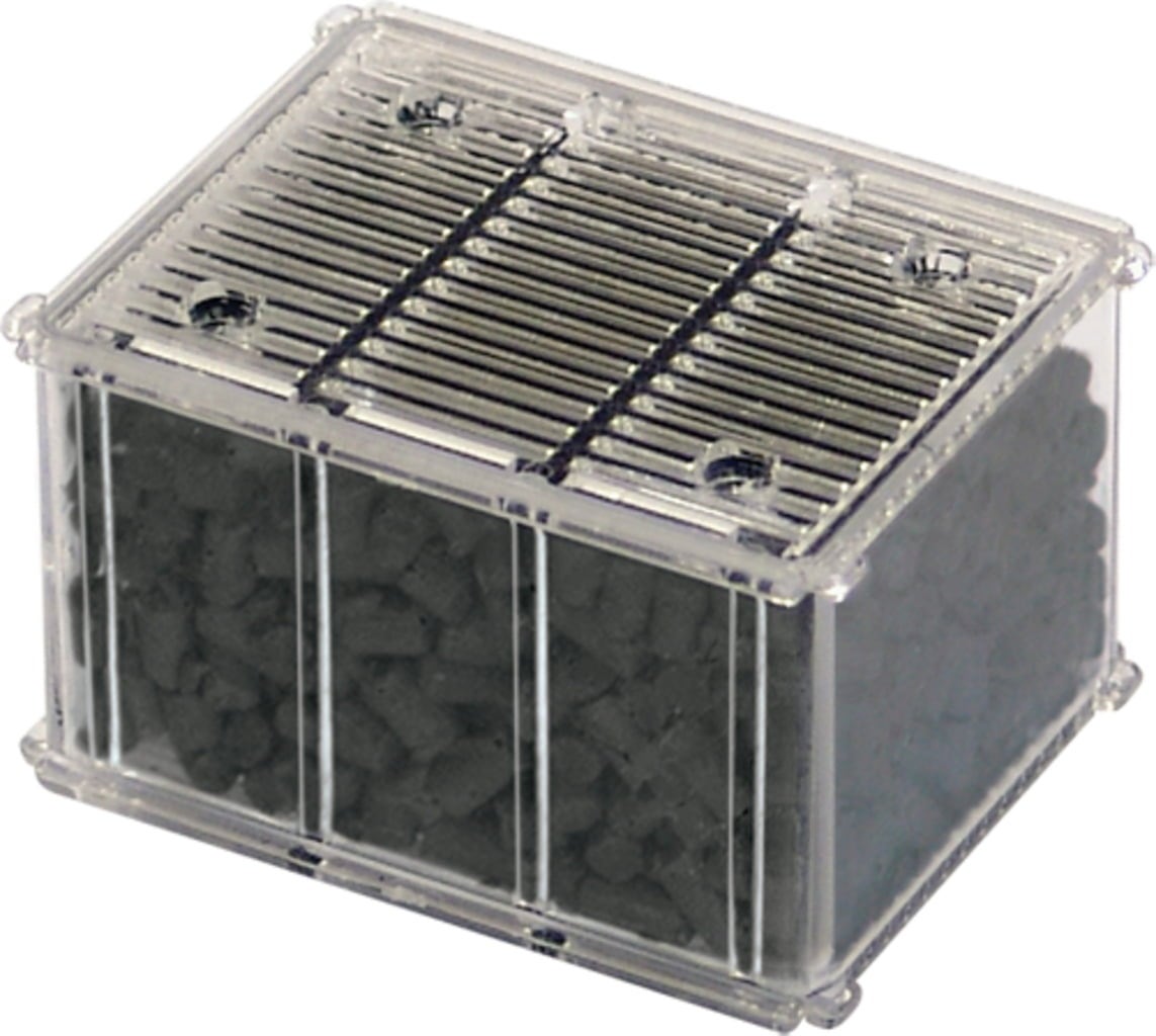 El carbón activo EASYBOX® elimina los desechos orgánicos disueltos en el agua, los malos olores, las decoloraciones y las toxinas del agua del acuario por absorción química.