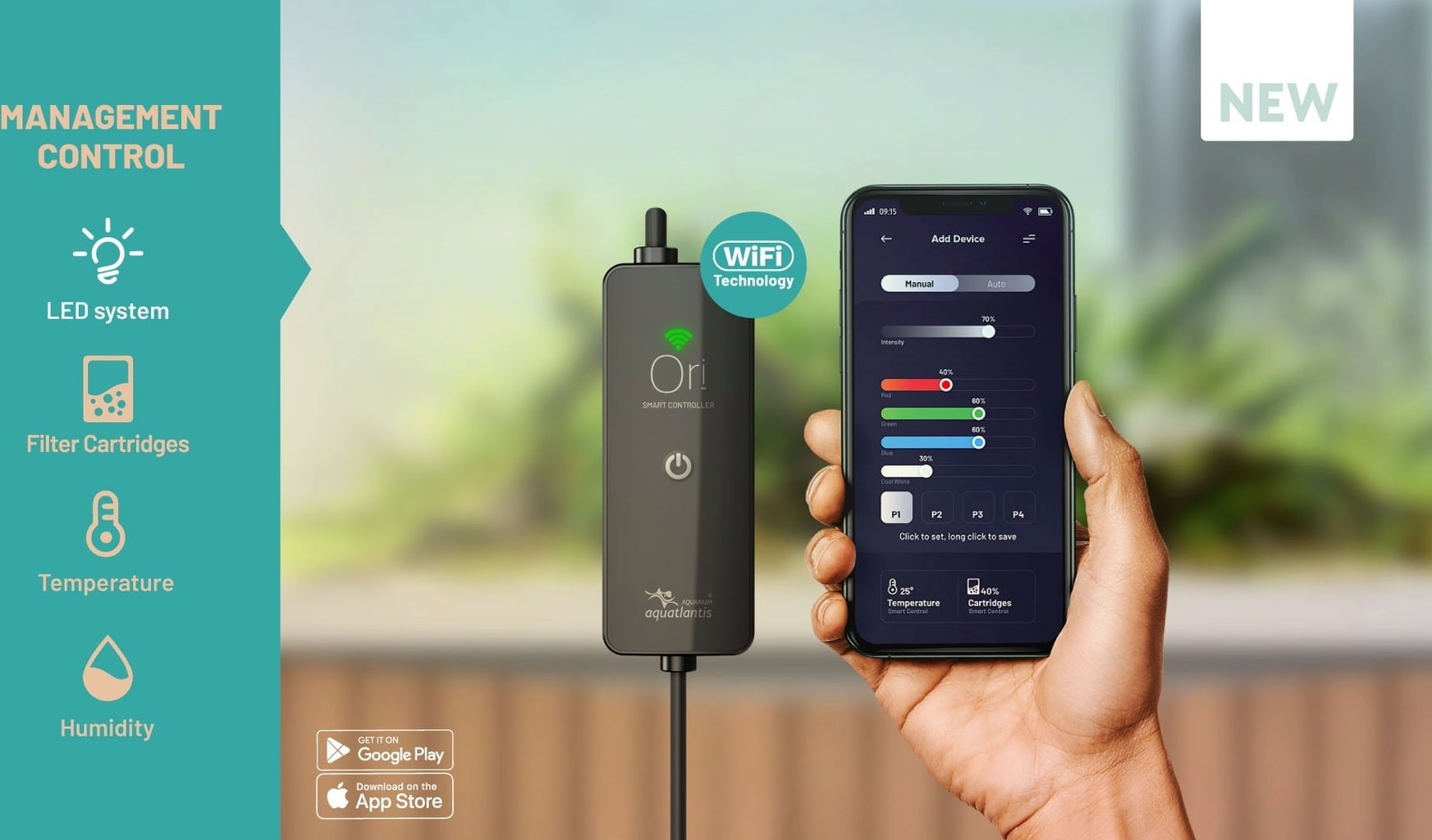 La combinación de acuario Splendid Ultra 110 de Aquatlantis es una combinación moderna con perfiles de aluminio de alta calidad y armarios bajos a juego. Además del acuario y el elegante mueble bajo, el set también contiene un completo sistema de iluminación LED con tecnología RGBW, un sistema de filtrado interno Biobox con cartuchos filtrantes respetuosos con el medio ambiente, un calefactor, una bomba y el ORI Smart Controller para un fácil control a través del smartphone.