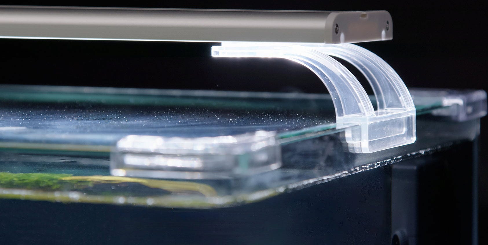 Especialmente prácticos son los innovadores soportes de acrílico transparente, que crean un llamativo efecto de suspensión y se adaptan perfectamente a cualquier tipo de acuario. Gracias al sistema de deslizamiento ajustable, la propia lámpara LED puede instalarse fácilmente en acuarios de diferentes tamaños, compatibles con cristales de hasta 8 mm de grosor.