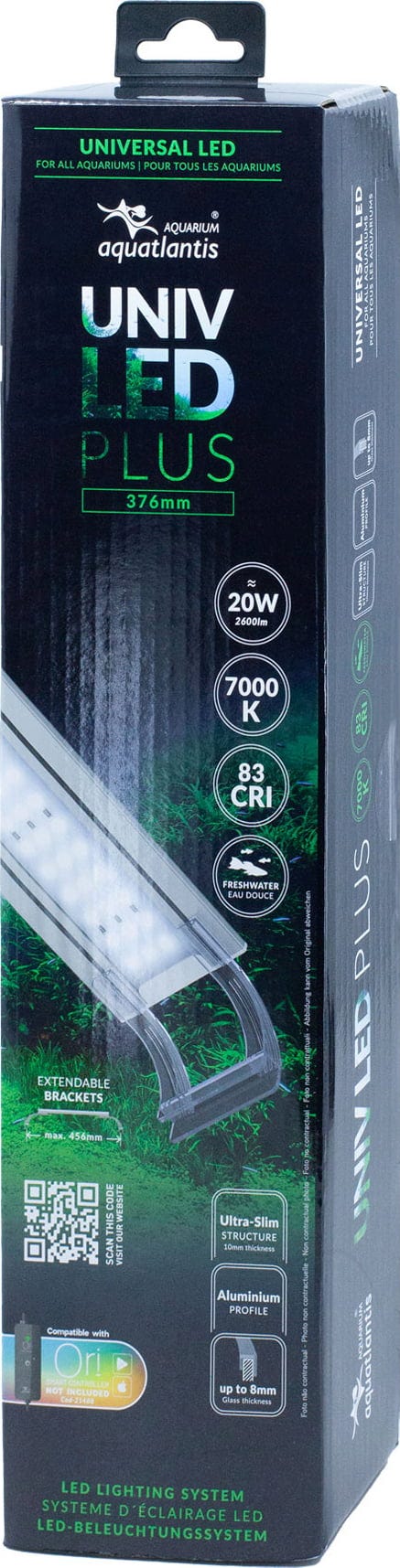 A pesar de su delgado perfil, la UNIV LED PLUS ofrece una calidad de luz excepcional: con 7000 Kelvin y un índice de reproducción cromática (IRC) de 83, produce una luz intensa y natural similar a la luz diurna. Esto realza los colores vivos de los peces y el verde brillante de las plantas acuáticas, creando una imagen submarina nítida y vibrante.