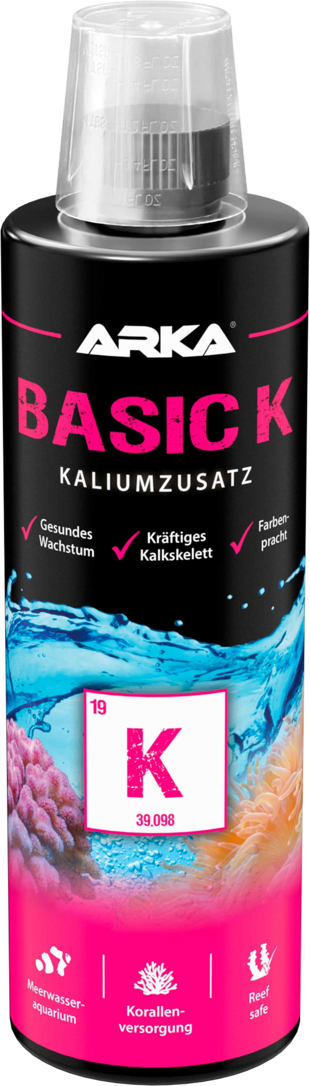 Basic K de ARKA es adecuado para todos los acuarios marinos, donde aumenta específicamente el valor de potasio previniendo la deficiencia de potasio.