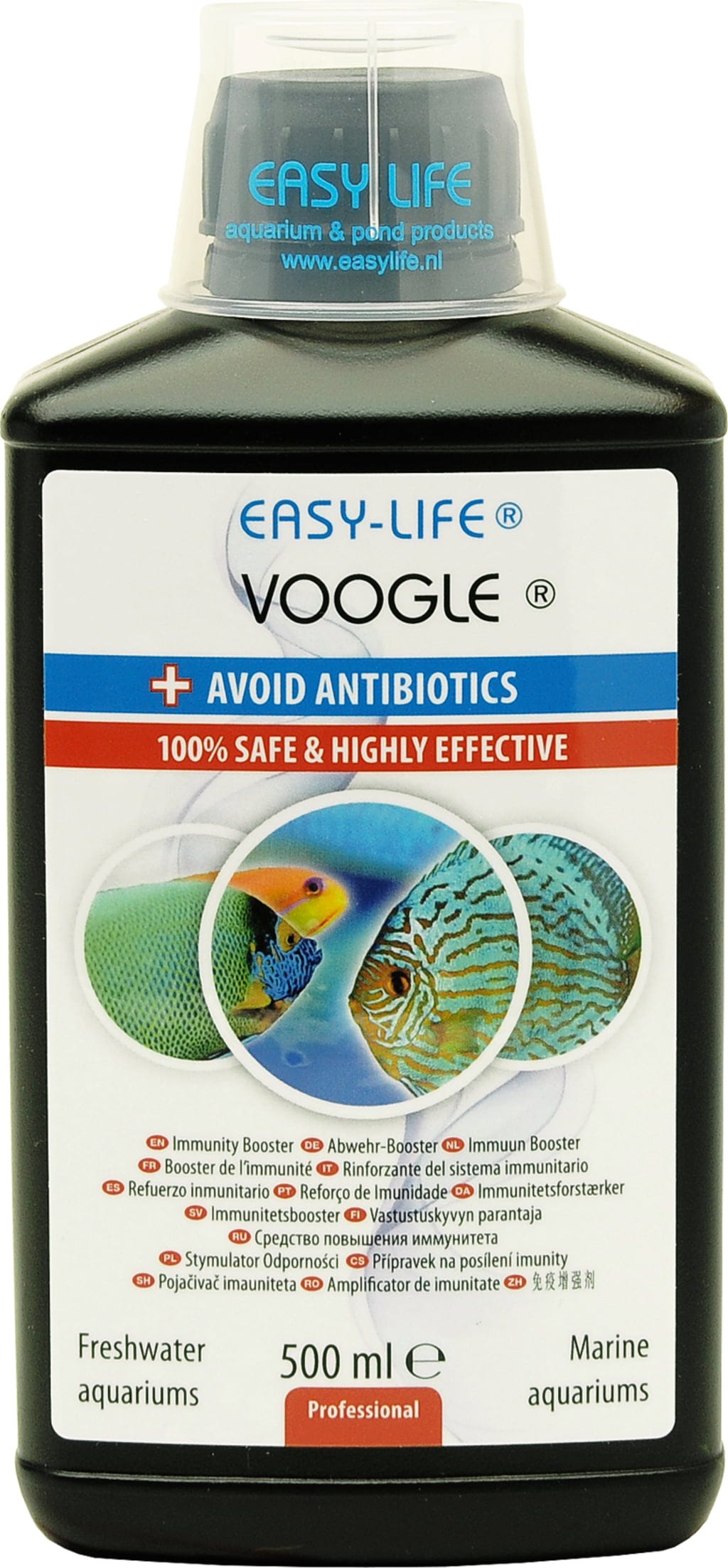 Voogle es un producto innovador que beneficia la salud y el sistema inmunológico de los peces. El uso de Voogle minimiza el uso de antibióticos. El sistema inmunológico se estimula y los peces pueden protegerse mejor contra las enfermedades.