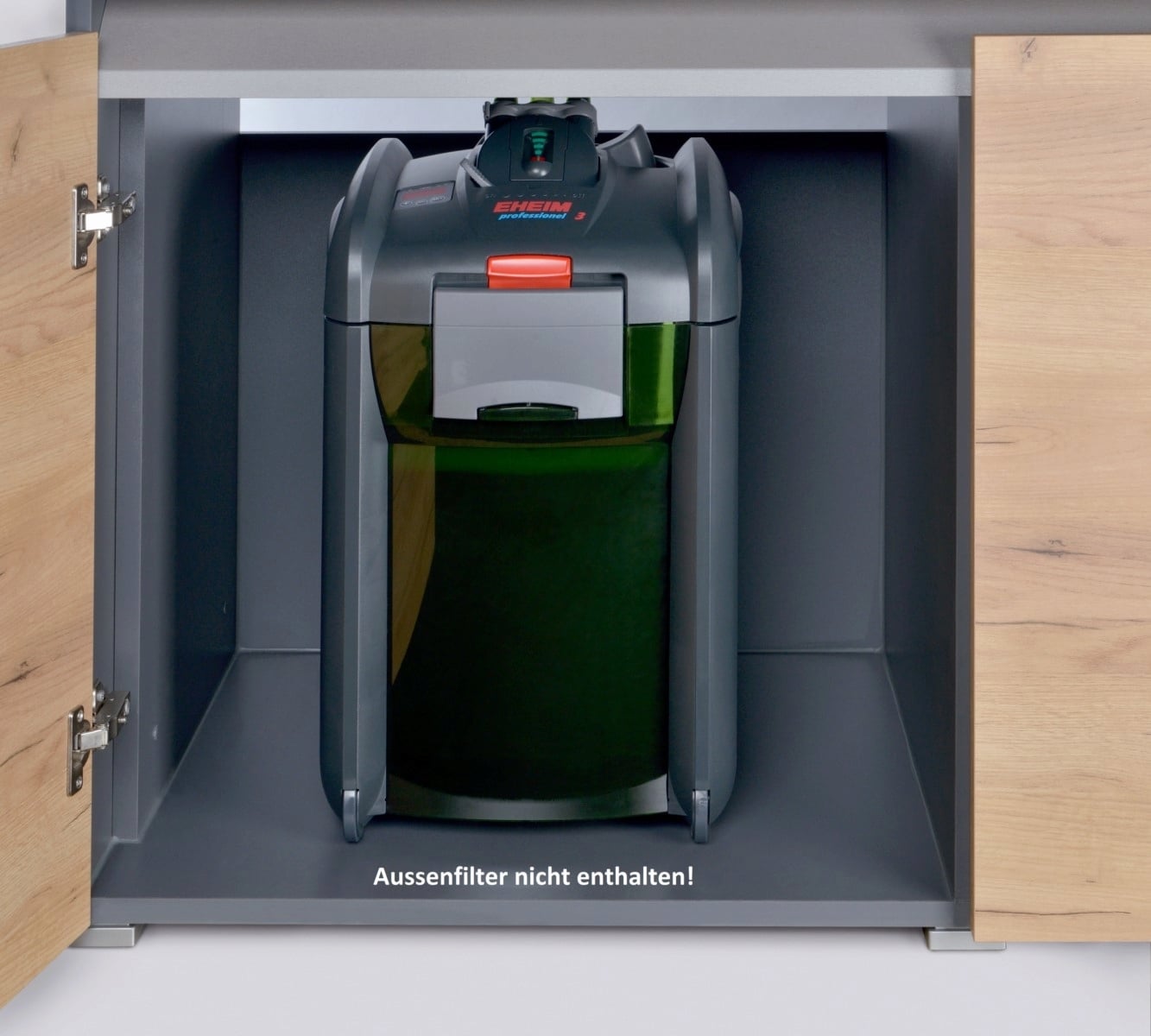 El acuario con mueble Eheim Incpiria 530 se distingue por sus líneas claras y una renuncia deliberada a los accesorios decorativos. Los frentes de los muebles en alto brillo (colores alpino y grafito) o con un moderno patrón de madera confirman su elegante diseño. A esto se suma la iluminación ambiental integrada en el mobiliario.