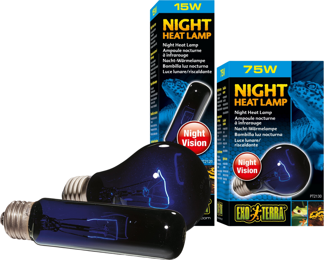En la naturaleza, las condiciones de luz y calor cambian durante el día y la noche. En un terrario, deben imitarse artificialmente para que los animales reciban suficiente radiación UV. El Night Glo imita la luz de la luna de la naturaleza sin afectar el ciclo de actividad del animal. Para imitar la luz de la luna de la forma más realista posible, la luz brilla en un color azulado. La lámpara genera tanto calor como es habitual en las noches tropicales.