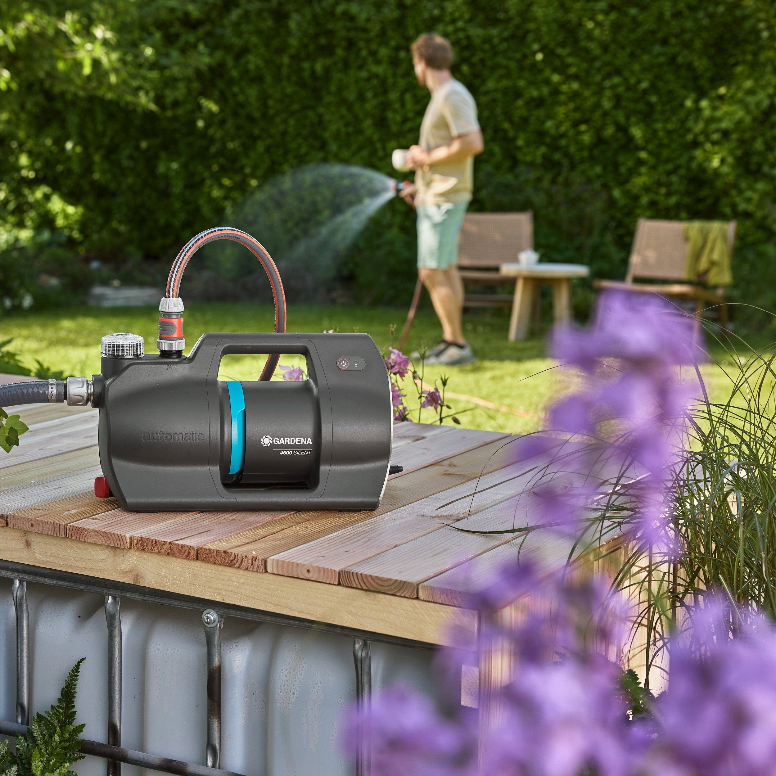 La unidad de control 4600 Silent para el hogar y el jardín es tu aliado inteligente para el suministro automático de agua. Detecta con precisión cuándo se necesita agua y suministra la presión ideal directamente a las plantas, con un simple mando o a través de un control externo. Gracias a la innovadora tecnología Silent, el aparato funciona de forma tan discreta que puede utilizarse sin problemas incluso en las suaves tardes de verano, con un nivel de ruido apenas perceptible incluso a unos metros de distancia.