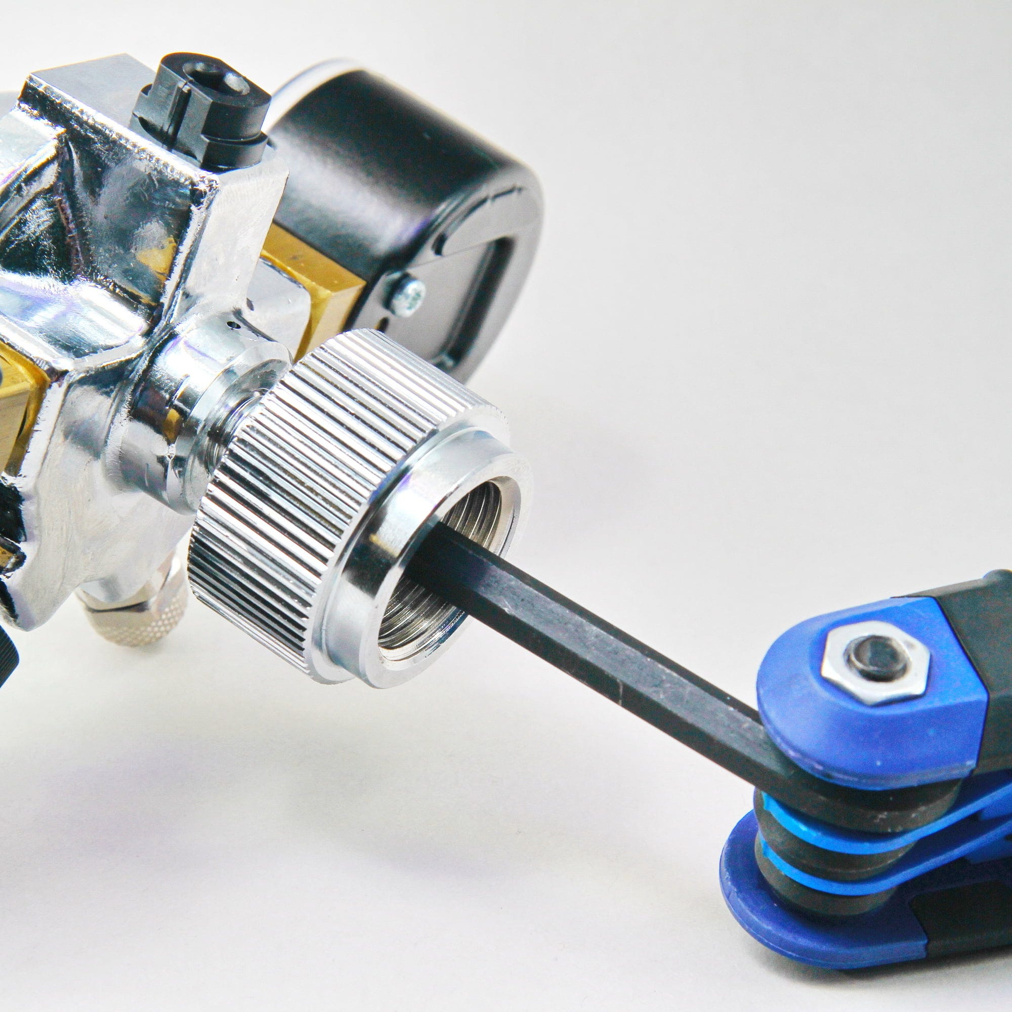 Para instalar el JBL ProFlora Adapt u-m basta con enroscar el adaptador, con una llave Allen de 6 mm (no incluida), en la rosca de la válvula reductora de presión. La tuerca anular, ahora compatible, permite la conexión a todas las botellas rellenables. La operación puede invertirse en cualquier momento. El JBL ProFlora Adapt u-m es compatible con el reductor de presión JBL ProFlora u001 Profi.