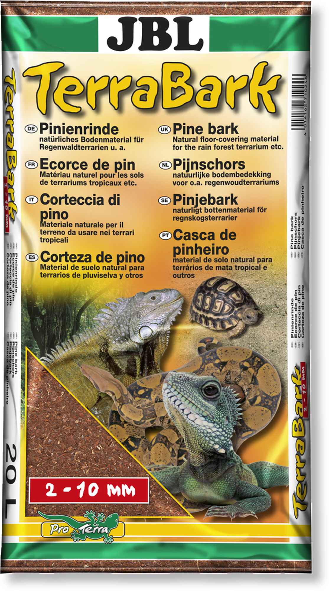 El sustrato de los terrarios inspirados en la selva tropical debe cumplir ciertos requisitos. TerraBark de JBL se fabrica a partir de corteza de pino y está garantizado que no contiene pesticidas. El sustrato de tierra también regula la humedad en el terrario y garantiza estructuras de tierra suelta.