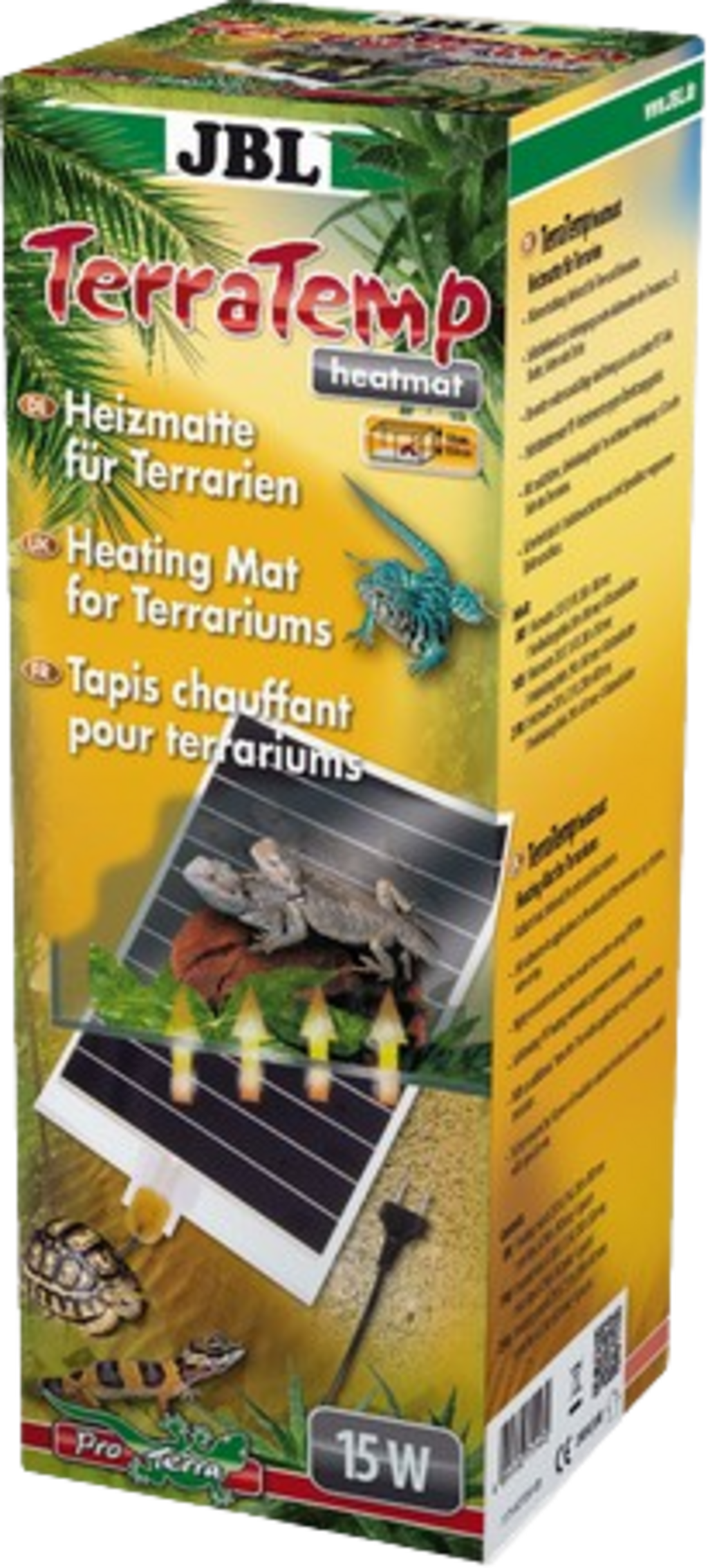 TerraTemp Heatmat de JBL es una esterilla de calefacción por infrarrojos autoadhesiva para generar y distribuir de forma óptima el calor en los terrarios. La esterilla calefactora está fabricada con una lámina de PET extrafuerte con dos capas aislantes seguras con protección contra el sobrecalentamiento. La conexión eléctrica de la alfombrilla calefactora está encapsulada con una resina especial para máxima seguridad.