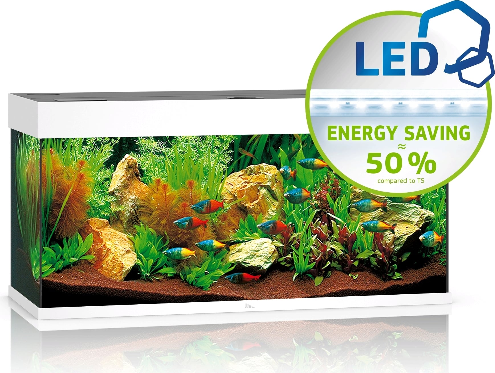 La moderna tecnología de tubos de iluminación LED MultiLux de JUWEL te ofrece una iluminación brillante y un excelente crecimiento de las plantas. Los tubos LED intercambiables de 17 vatios DAY y NATURE generan un espectro de luz óptimo con un ahorro energético simultáneo de hasta un 50 % en comparación con los tubos T5. El sistema de iluminación LED MultiLux del RIO 180 LED te permite trabajar cómodamente en el acuario incluso cuando la iluminación está encendida. La unidad de iluminación soldada por ultrasonidos es 100% impermeable y cumple con los altos estándares de seguridad europeos.