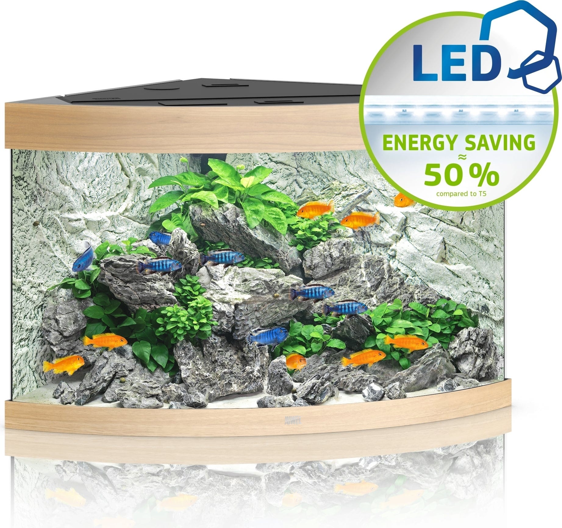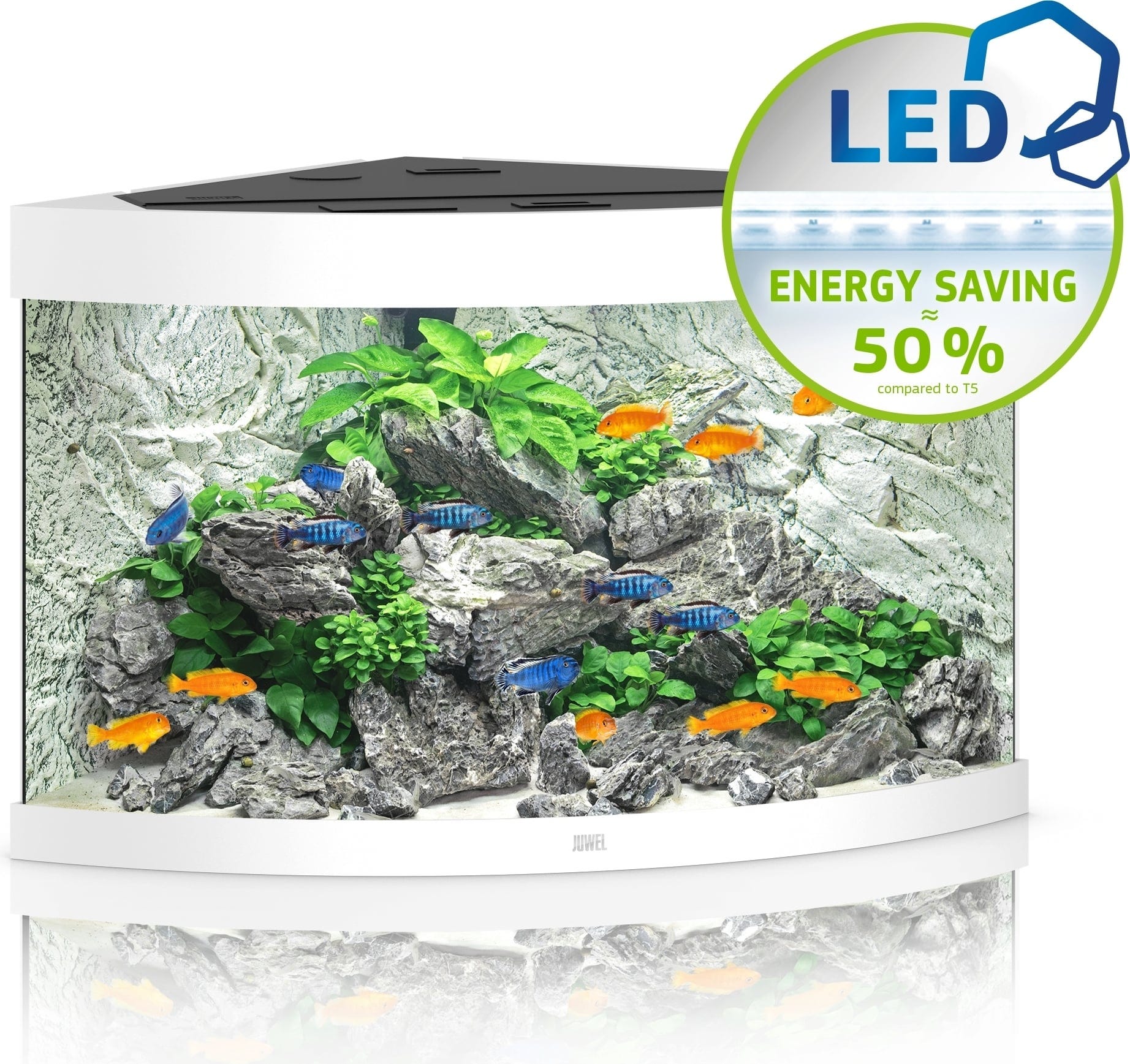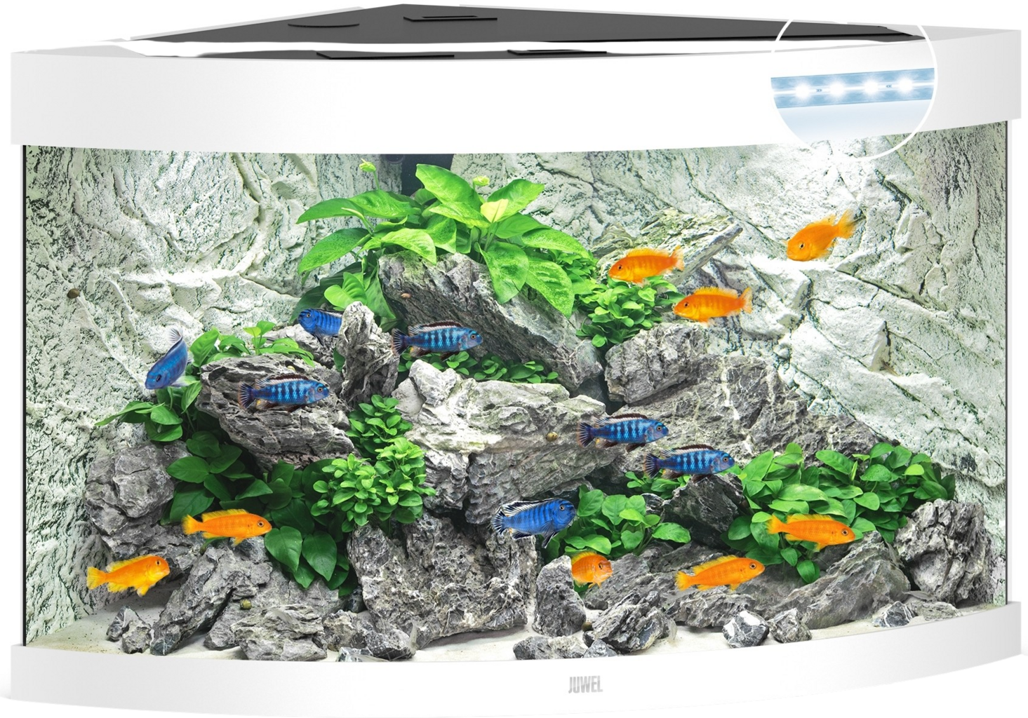 El acuario Juwel TRIGON 190 LEDtiene un efecto de profundidad impresionante. Se integra armoniosamente en cualquier rincón y crea un remanso de paz para toda la familia.