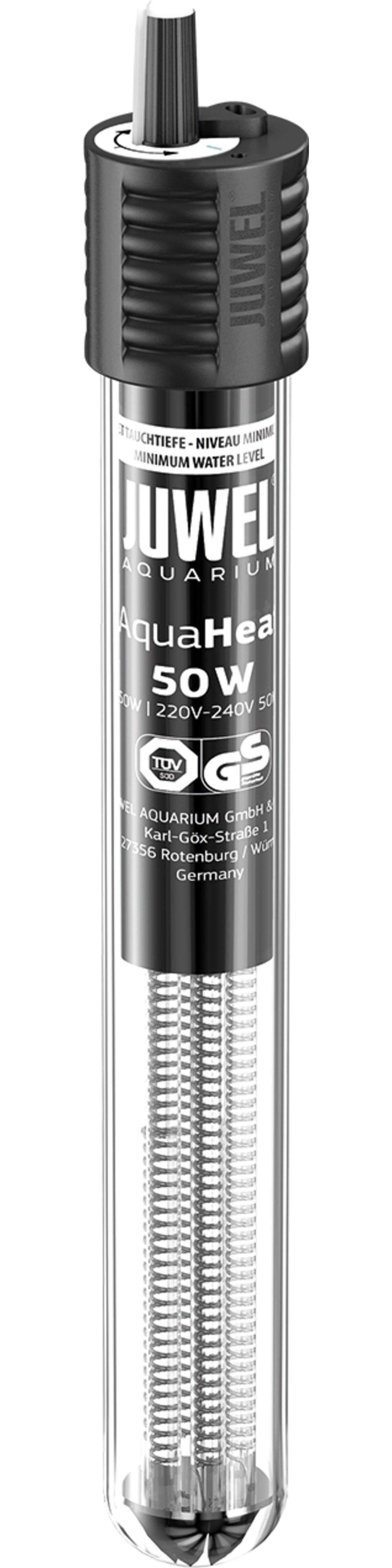 Este calentador garantiza de forma fiable y segura una temperatura adecuada en tu acuario. Dependiendo de la temperatura ambiente y del tamaño del acuario, puedes alcanzar una temperatura del agua de aproximadamente +28C con el calentador. Gracias al uso de contactos de alta calidad y vidrio de borosilicato resistente al calor y a los impactos (gas de seguridad), los calentadores ajustables Juwel cumplen con las más altas exigencias en términos de funcionamiento y seguridad y cuentan con la certificación TÜV/GS.