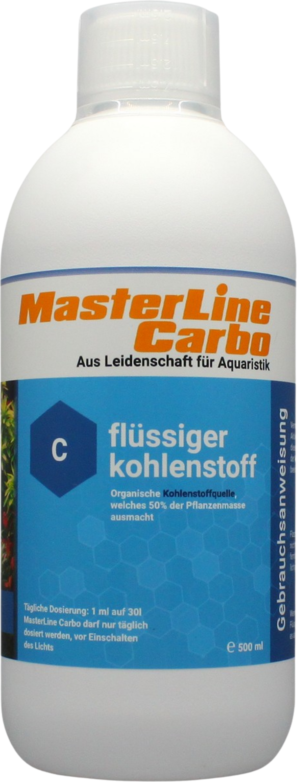 El carbono es uno de los nutrientes más importantes para las plantas acuáticas. Un suministro suficiente es absolutamente necesario para mantener la vitalidad de las plantas e inhibir el crecimiento de algas. MasterLine Carbo es un carbón orgánico líquido que no afecta el pH del agua. Las plantas absorben los nutrientes del carbón líquido con especial rapidez y se recomienda una dosificación diaria. MasterLine Carbo es adecuado como única fuente de carbono o en combinación con la adición de CO2 convencional.
