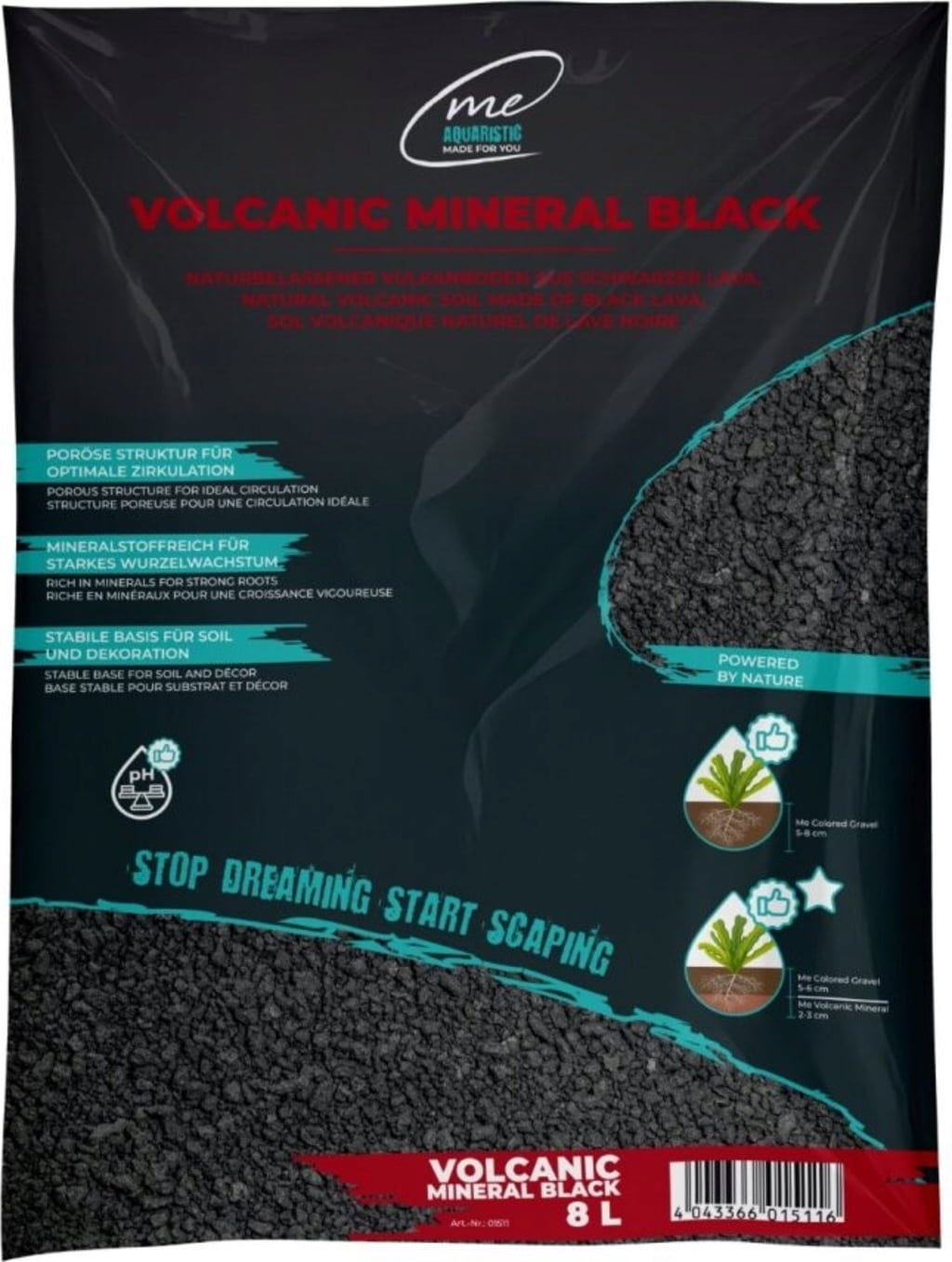 Sienta las bases para un ecosistema estable y un crecimiento vigoroso de las plantas. Me Volcanic - Mineral Black de me Aquaristic es un sustrato volcánico negro que aporta la estructura y mineralidad de la lava real al acuario, creando una base ideal para tu paisaje acuático.
