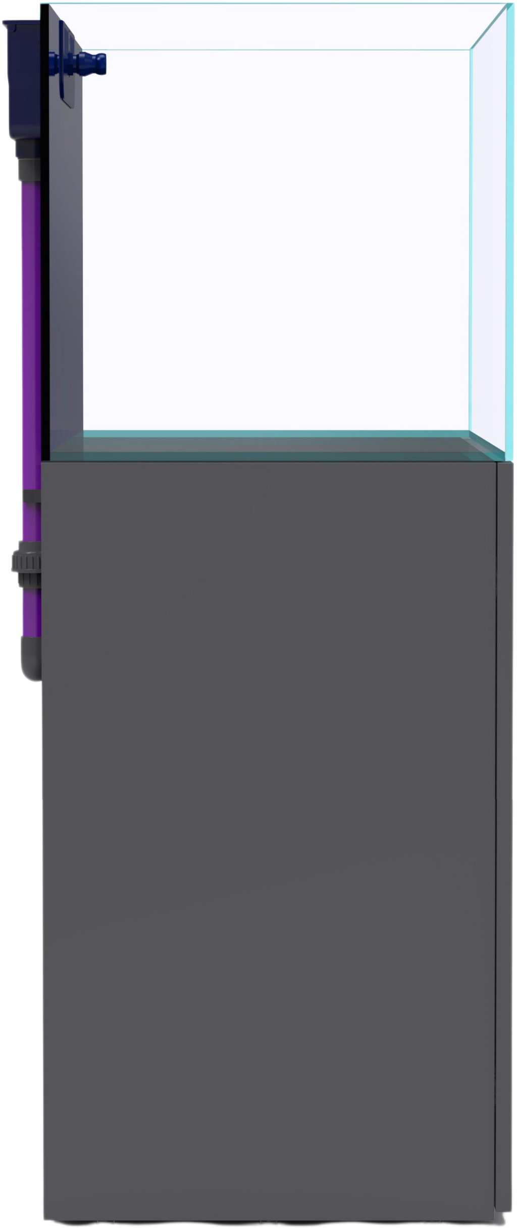 La gran cámara principal puede alojar diversos dispositivos, como filtros, reactores o skimmers, y garantiza un nivel de agua constante de aproximadamente 21 cm. El rebosadero puede regularse mediante una válvula para reducir el ruido del desagüe. También dispone de un desagüe de emergencia. El depósito de llenado tiene una altura de 50 cm y proporciona agua de evaporación para una semana.