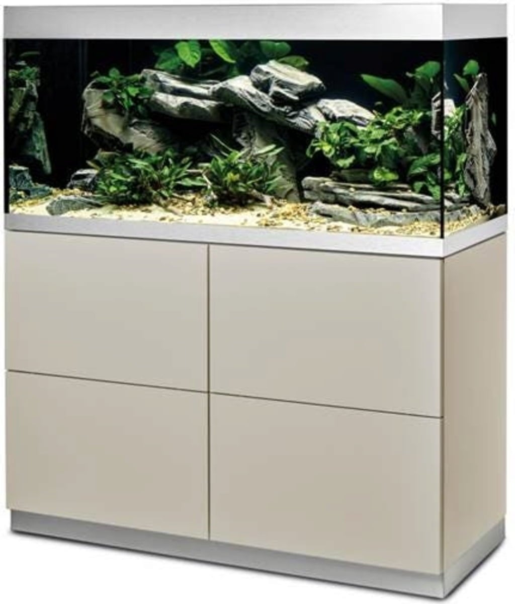 Con una superficie de 115 x 50 cm y un diseño rectangular, el acuario, fabricado en vidrio flotado de alta calidad, encaja perfectamente en cualquier entorno. La tapa de aluminio completa y fácil de abrir y el acabado con efecto aluminio confieren al acuario un aspecto limpio y acabado, creando un elemento llamativo. Las tuberías, los cables y los filtros quedan ocultos en el mueble inferior con patas ajustables para una estabilidad óptima. El compartimento de secado ofrece escondites adicionales y el equipamiento técnico queda totalmente oculto. Incluso el suministro eléctrico es un juego de niños gracias a la puerta de alimentación.