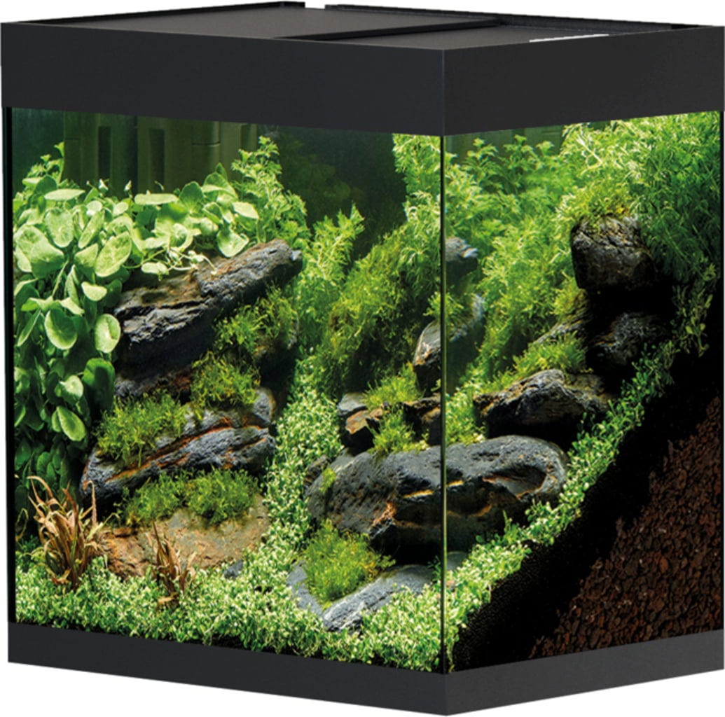 El acuario StyleLine está especialmente diseñado para satisfacer las necesidades de un cuidado óptimo de los animales. Los elementos de cristal están fabricados con vidrio flotado de seguridad de alta calidad con bordes pulidos. Los embellecedores superior e inferior perfeccionan el aspecto visual, ocultando los bordes de agua o las diferentes capas de sustrato.