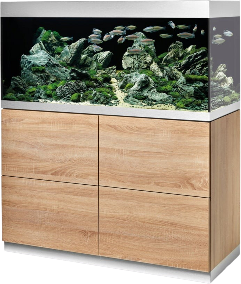 La combinación de acuario Highline optiwhite 300 roble de Oase destaca por su nuevo diseño e individualidad. Los acuarios y armarios inferiores de OASE HighLine están perfectamente coordinados entre sí y convencen por sus materiales de alta calidad. Con una superficie de 115 x 50 cm y un diseño rectangular, se adapta de forma óptima a cualquier ambiente; además, el diseño es muy práctico: incluye un compartimento seco para un guiado ordenado de cables y mangueras, y un orificio específico en la base con una sencilla opción de conexión para el filtro. El compartimento seco ofrece posibilidades adicionales para ocultar elementos y la tecnología desaparece por completo. El armario inferior está equipado con pies ajustables para garantizar una base segura y sin tambaleos.