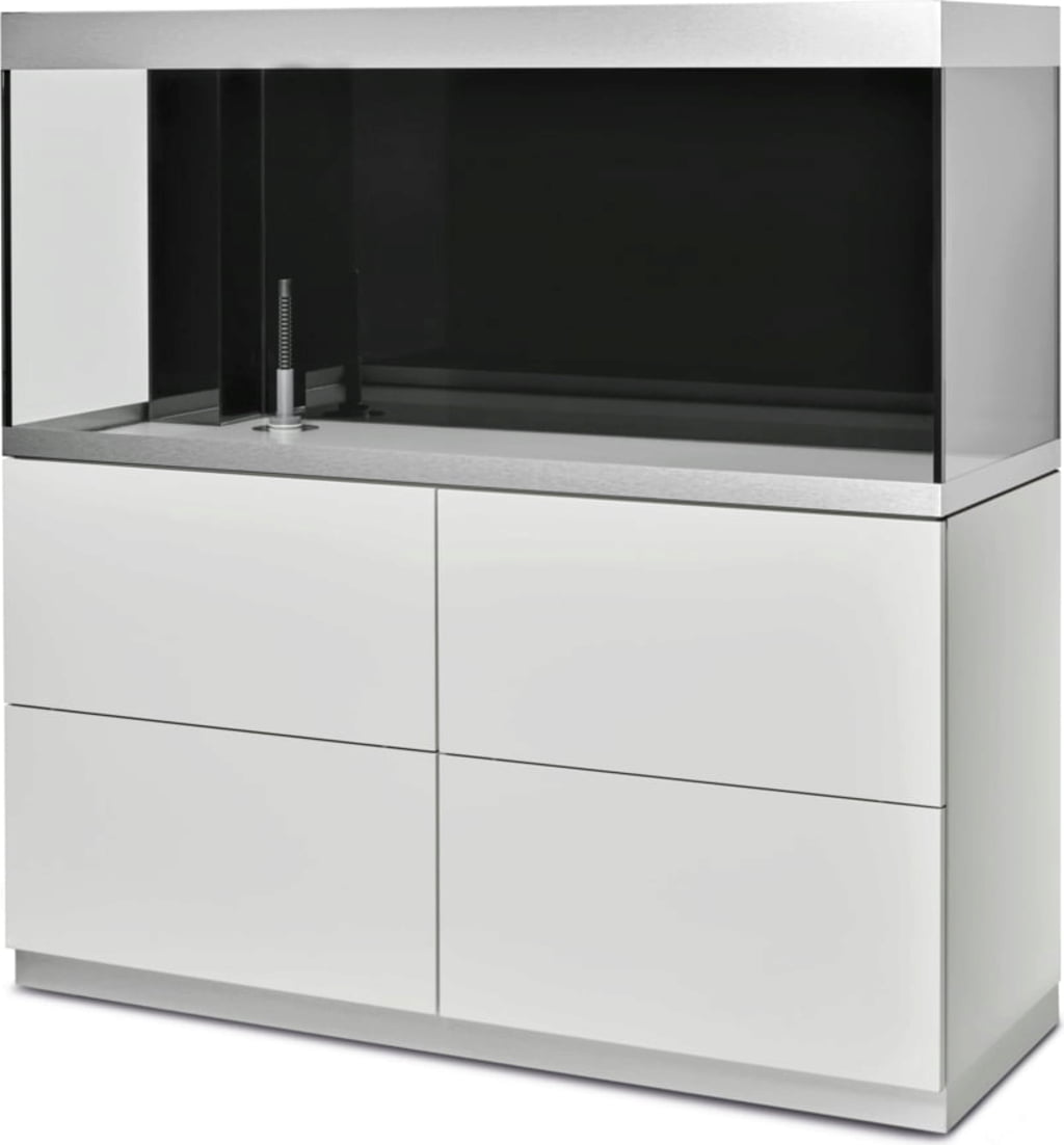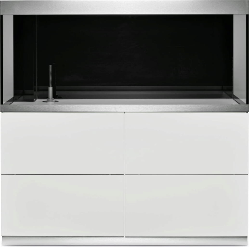 Las puertas del armario inferior sin tiradores con apertura por presión garantizan líneas limpias, y los embellecedores de aluminio del acuario ocultan los bordes antiestéticos. Los armarios HighLine para acuarios a partir de 200 litros pueden equiparse opcionalmente con hasta dos cajones en el armario inferior, proporcionando así más espacio de almacenamiento.