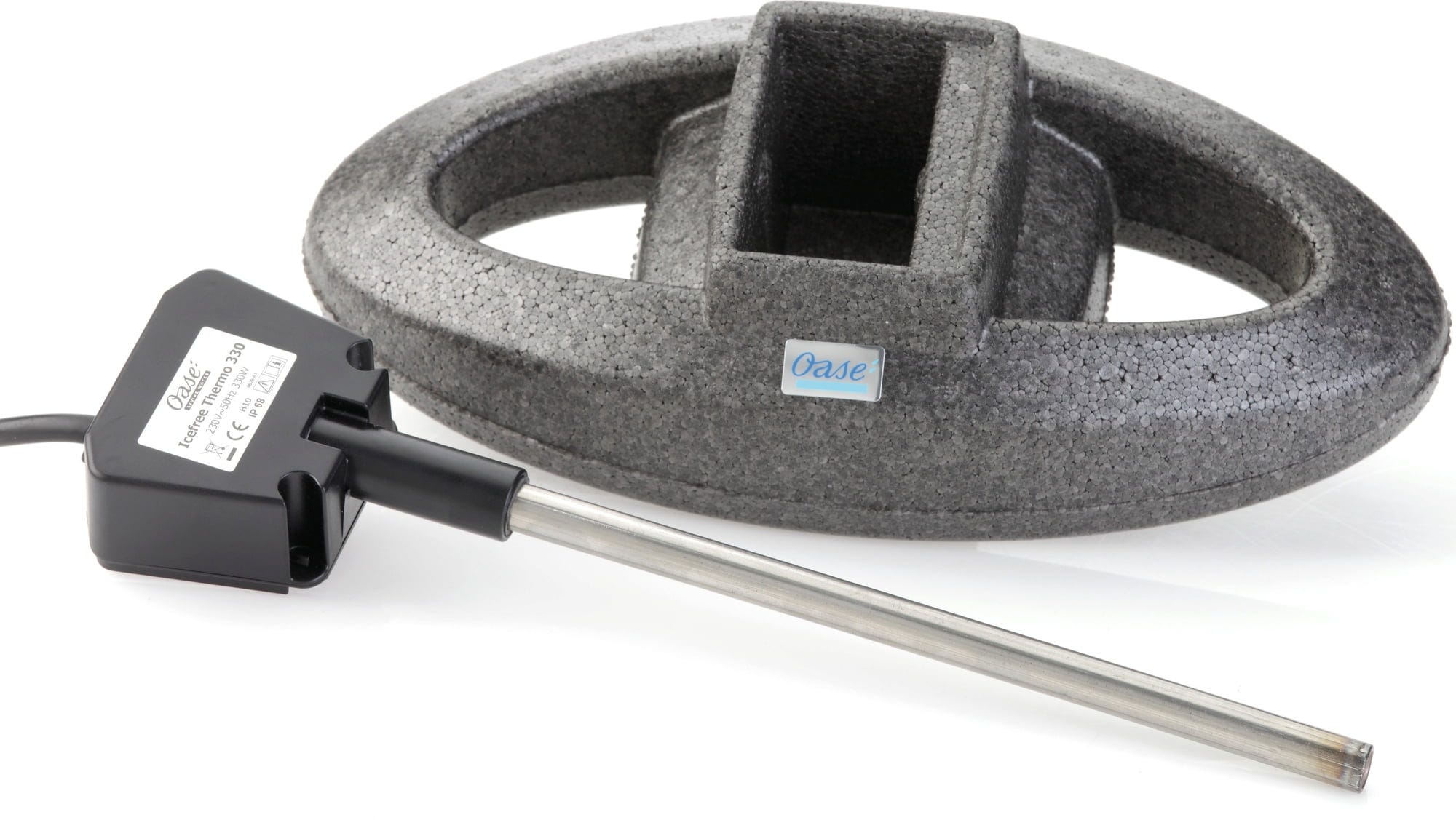 IceFree Thermo de OASE ofrece una protección óptima contra las heladas para el estanque durante los periodos más fríos del año, ayudando a que la flora y la fauna pasen el invierno sin problemas. Mantiene abierto un paso en el agua para el intercambio de oxígeno y permite que se dispersen los gases nocivos producidos por la descomposición. Este dispositivo para mantener la superficie libre de hielo ahorra energía y dispone de un elemento calefactor activo, por lo que es adecuado incluso para periodos prolongados de heladas intensas.
