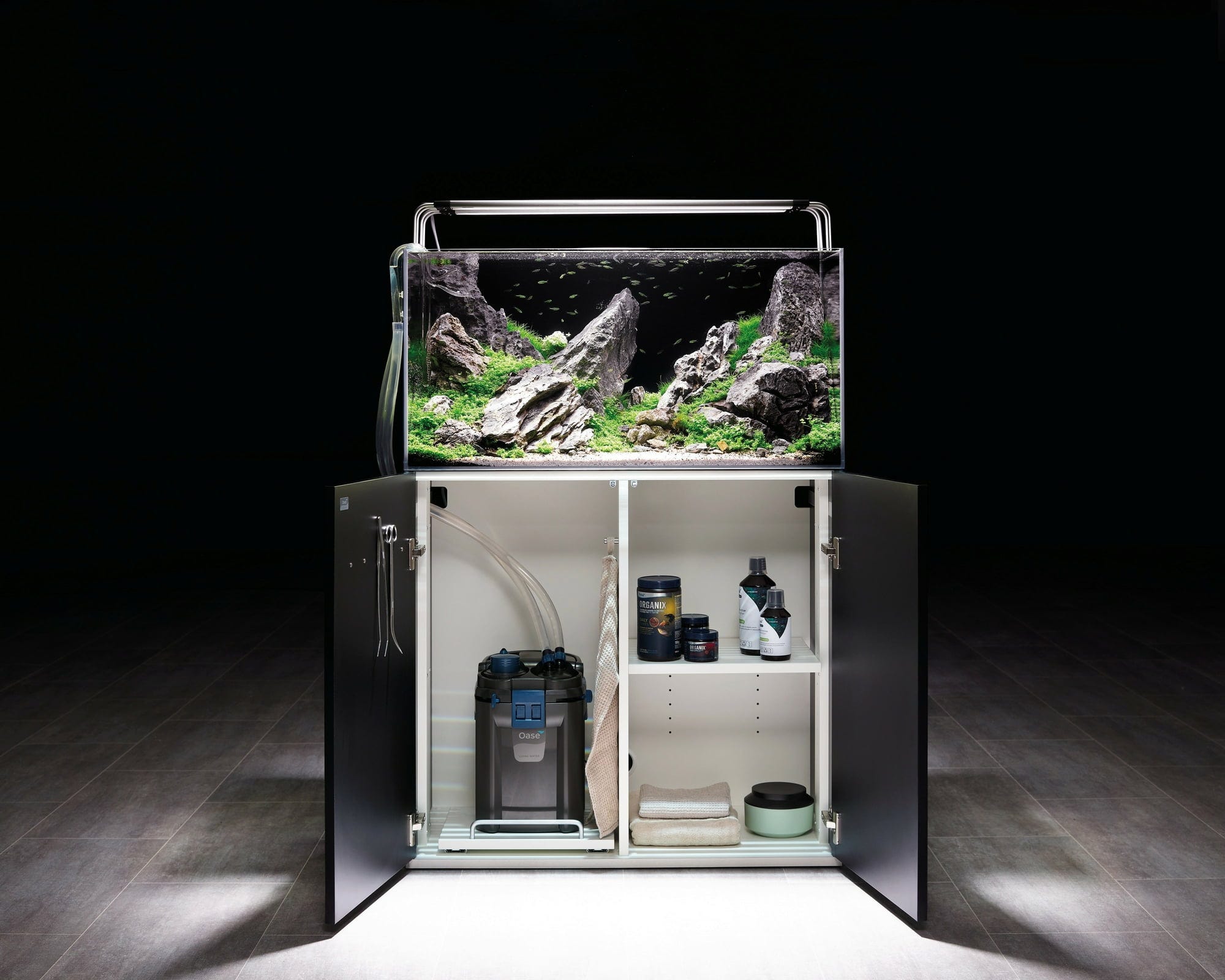 El set Oase ScaperLine 90 es práctico para casi cualquier entorno: tres tamaños y dos decoraciones de mueble inferior en los colores negro y gris garantizan que su aquascape se adapte a cualquier interior. Los expertos en aquascaping han diseñado y añadido detalles prácticos a la combinación de acuarios ScaperLine que no tienen parangón.