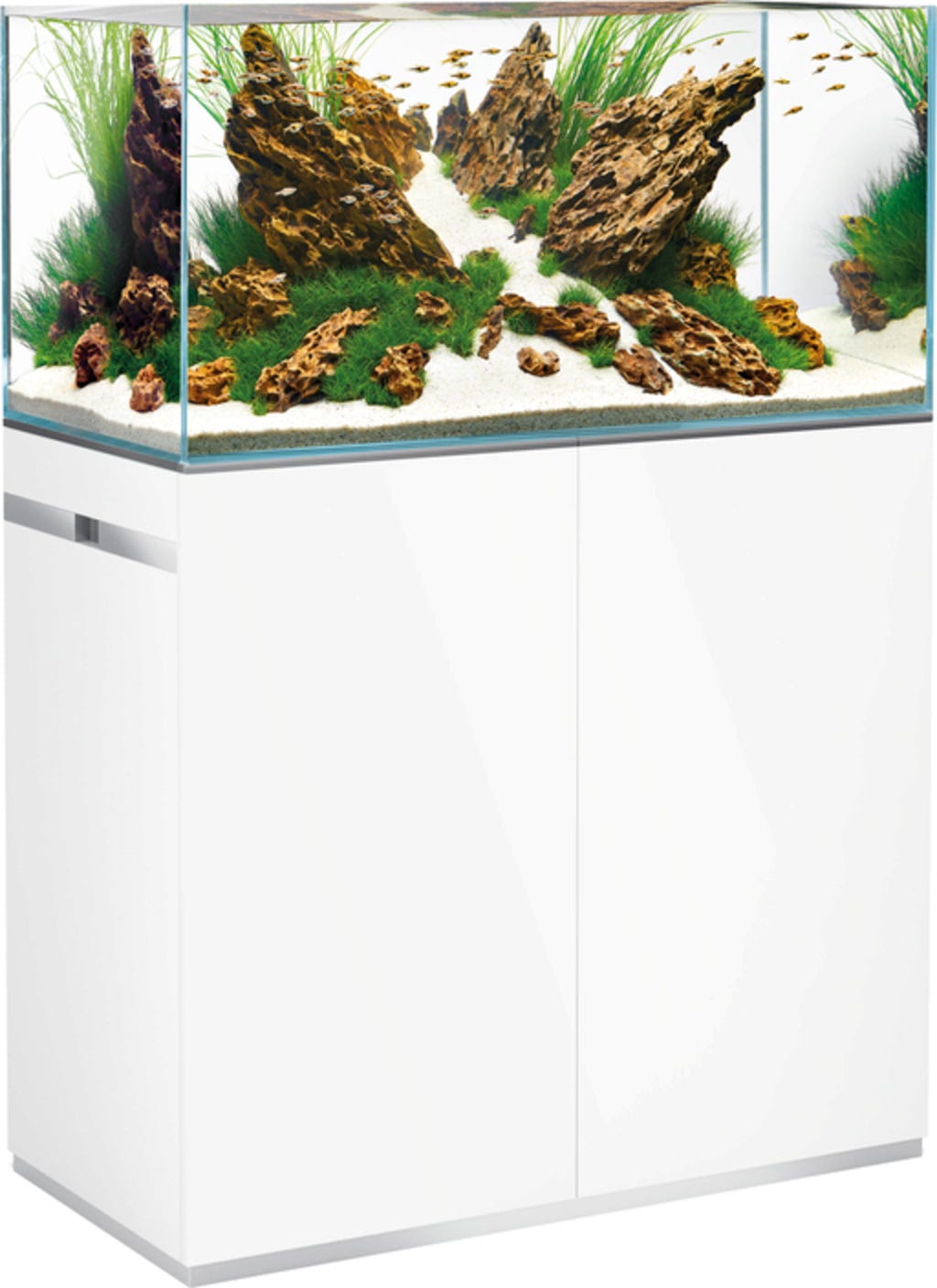 El pasacables del mueble y los bordes de cristal especialmente pulidos garantizan líneas claras y proporcionan un marco estético a su obra de arte, asegurando así una apariencia ordenada. El acuario y el mueble inferior encajan perfectamente en sus dimensiones, de modo que el tanque queda alineado sin fisuras con el mueble, sin bordes molestos.