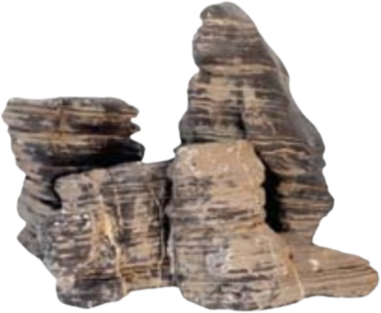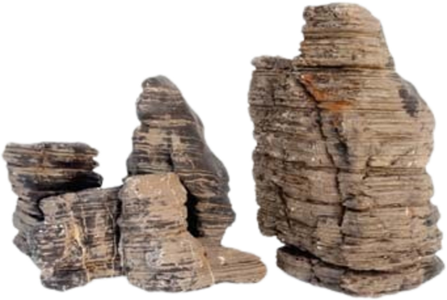 La característica distintiva de esta decoración es su estructura única en forma de cañón. Las rocas oscuras suelen tener superficies escalonadas y formas que recuerdan a las pagodas tradicionales, lo que confiere al diseño un aspecto marcado pero equilibrado y relajante. Es la elección ideal para crear un entorno acuático que transmita calma y naturalidad.