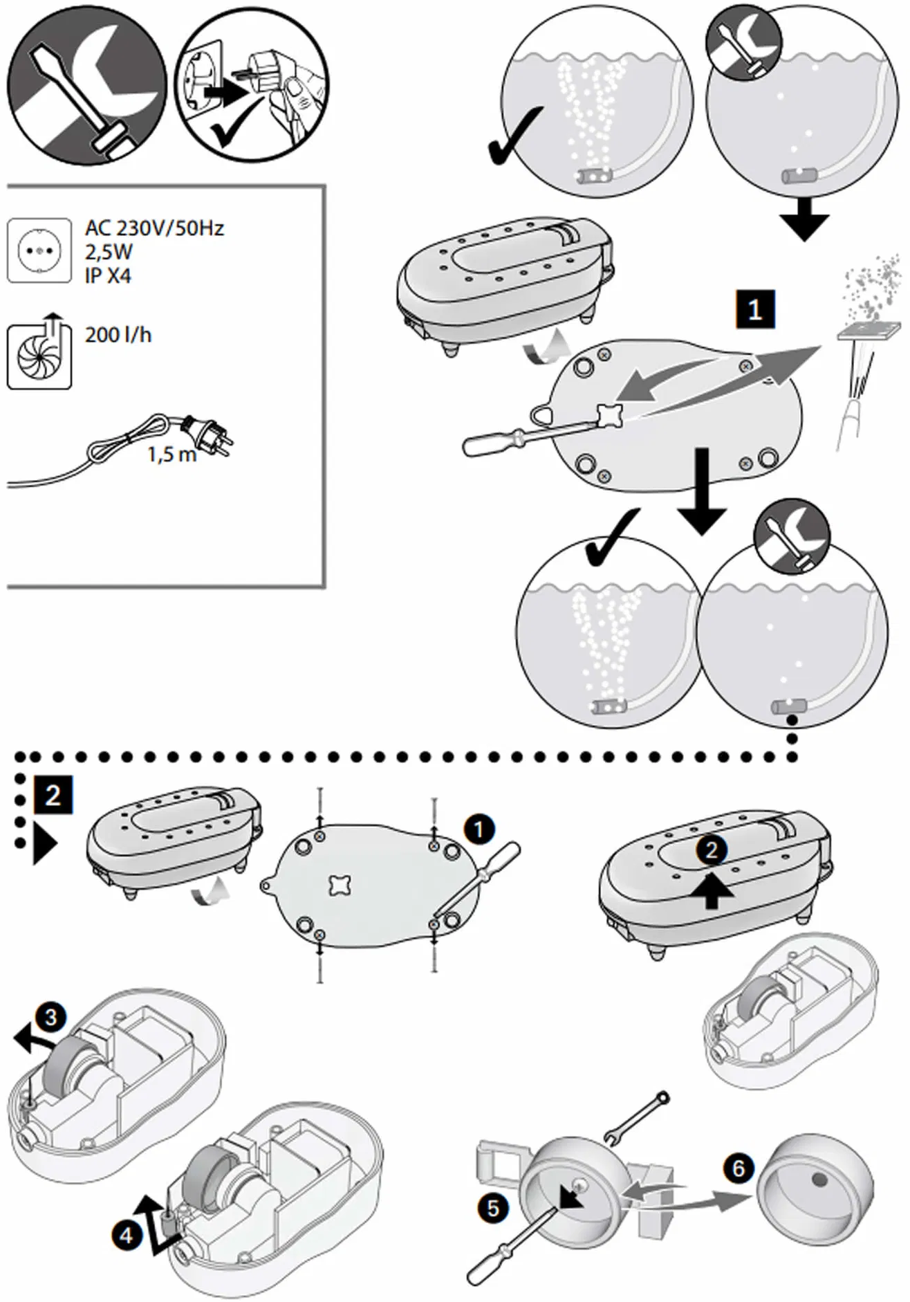 El aireador de estanque HEISSNER es la solución compacta para garantizar un suministro constante de oxígeno en tu estanque. Gracias a la aireación selectiva y a la circulación del agua resultante, se estabiliza el equilibrio biológico y aumenta considerablemente la eficacia del filtro del estanque. Especialmente en estanques con peces y durante los meses más cálidos del verano, esta fuente adicional de oxígeno es indispensable para evitar deficiencias de oxígeno. En invierno, las burbujas de aire que suben a la superficie ayudan a mantener una zona del agua libre de hielo y favorecen el necesario intercambio gaseoso, permitiendo que los gases de descomposición nocivos escapen sin obstáculos.