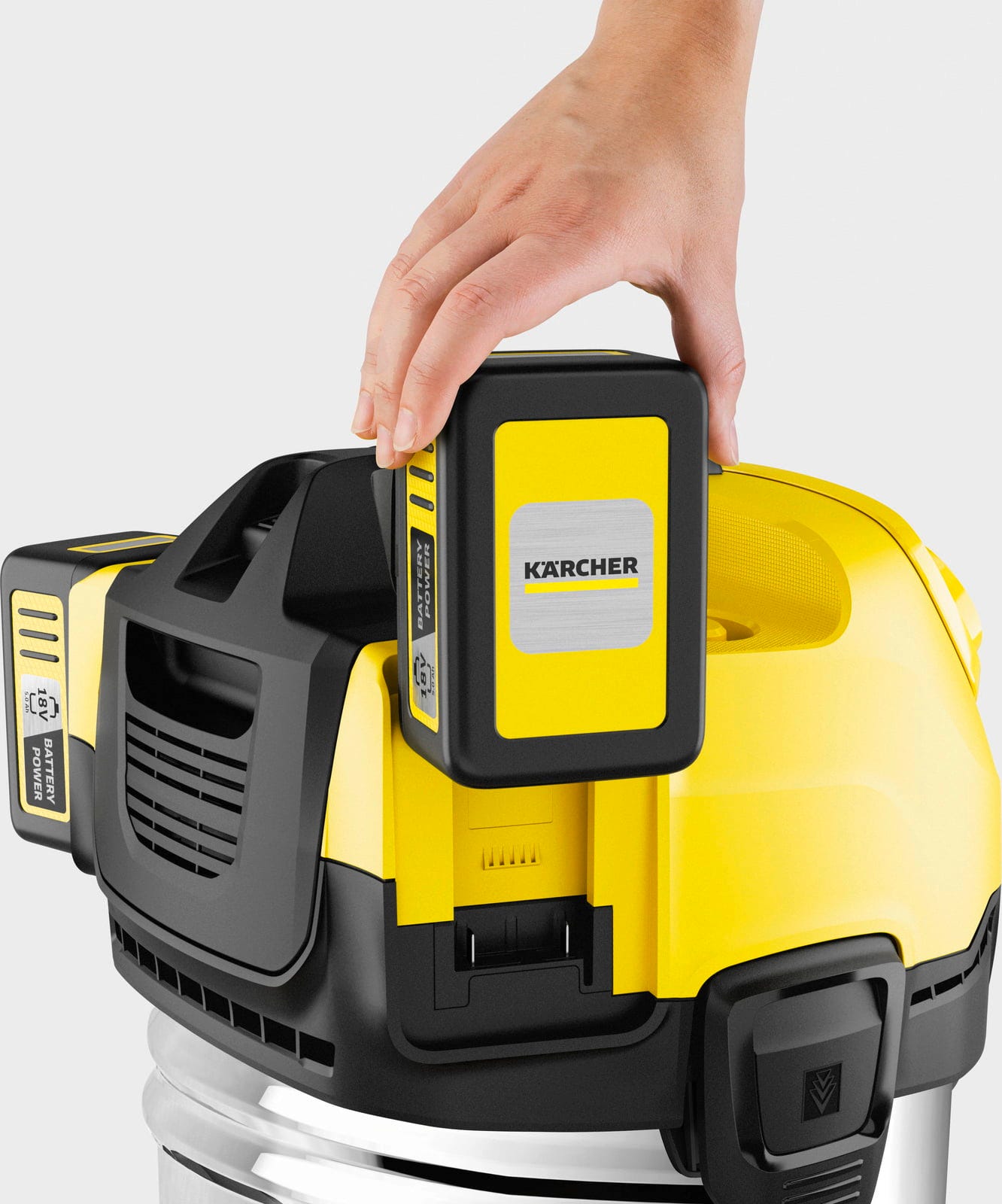 La aspiradora multifunción Kärcher WD 4 V-20/5/22 es un modelo versátil de gama media, ideal para trabajos de limpieza exigentes en taller, garaje y durante reformas. Con una potencia de aspiración de 240 W y un resistente depósito de plástico de 20 l, elimina de forma fiable suciedad seca, fina o gruesa, así como líquidos, sin necesidad de cambiar el filtro.