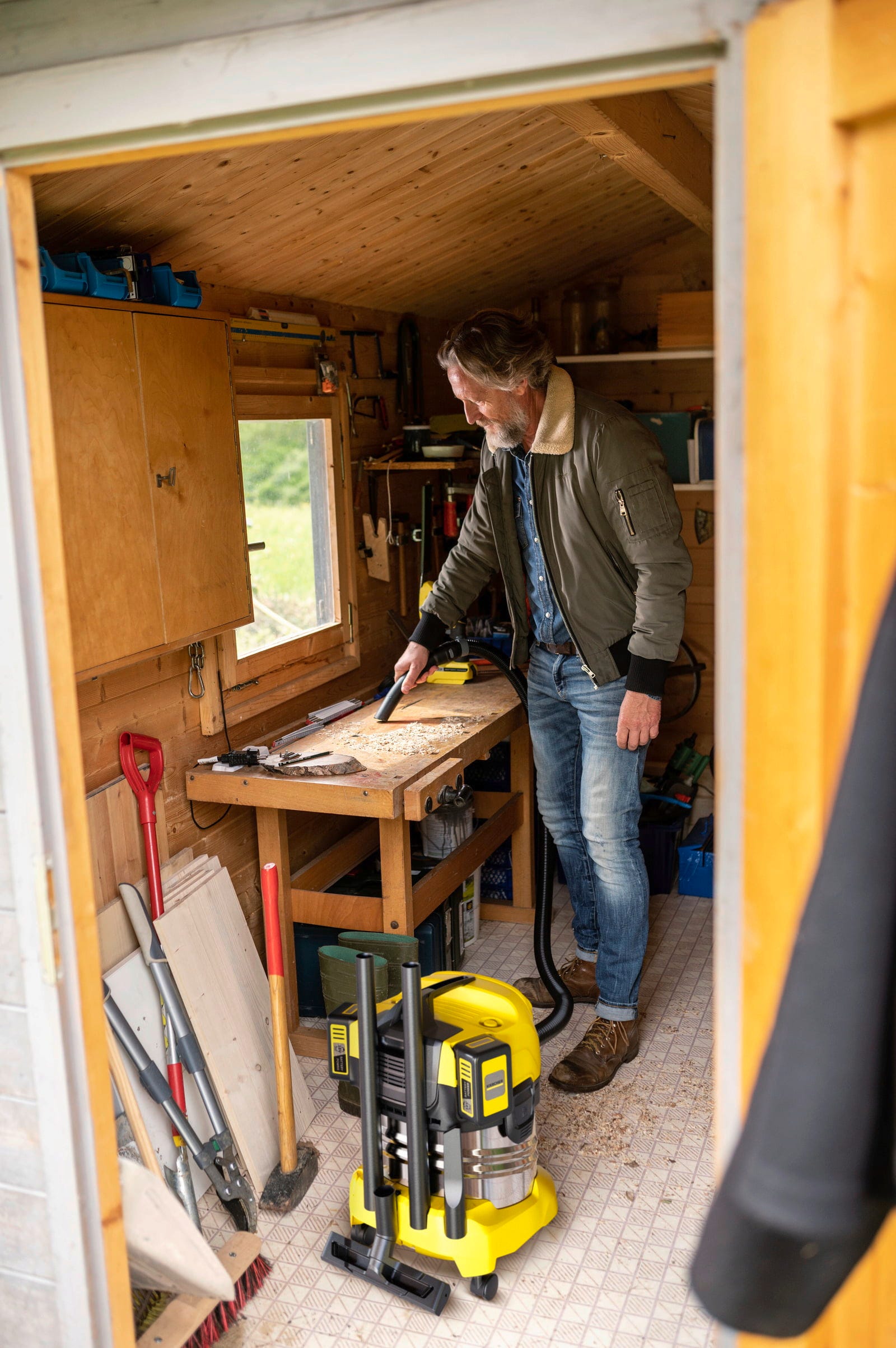 Gracias al sistema perfectamente coordinado formado por la manguera de aspiración, la boquilla para suelos y el filtro plano plisado, el equipo es adecuado como aspiradora multifunción para interiores de coche, alfombrillas y maletero, pero también para suelos de taller, sótano o garaje. Incluso durante trabajos de reforma elimina de forma fiable polvo, serrín o pequeñas cantidades de escombros. La función de soplado integrada también ayuda en la limpieza de terrazas, patios o zonas de difícil acceso.