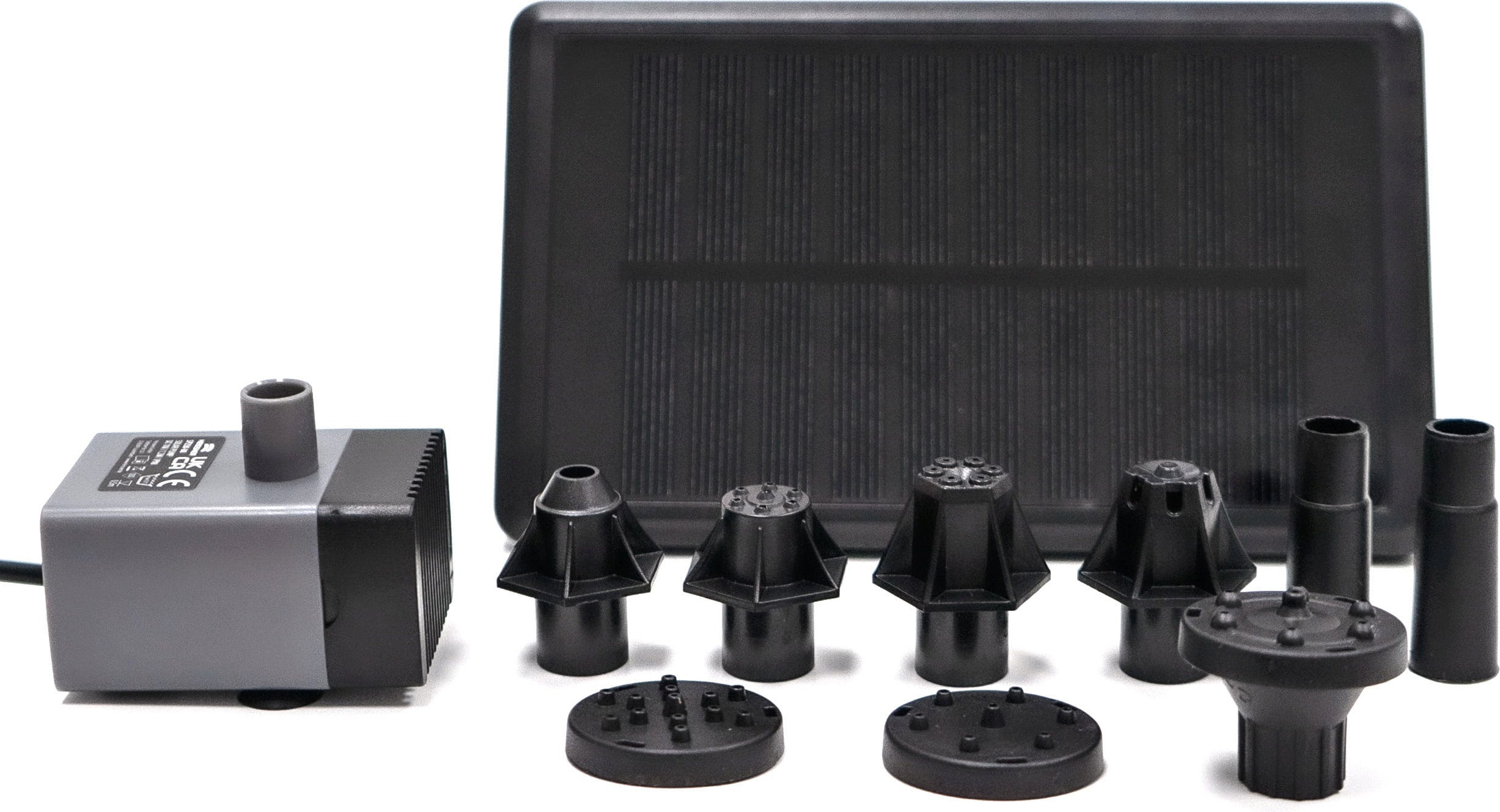 Esta bomba solar HEISSNER para estanques permite decorar el agua sin conexión a la red eléctrica y es ideal para mini estanques, estanques de terraza, estanques decorativos o estanques elevados. El sistema utiliza exclusivamente energía solar generada a través de un módulo fotovoltaico externo. El conjunto incluye un juego de boquillas múltiples para diversos elementos acuáticos decorativos que también contribuyen a la calidad del agua: la circulación constante enriquece el estanque con oxígeno vital, lo que es especialmente importante en los días calurosos y soleados.