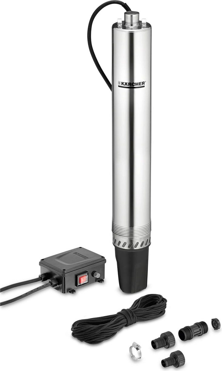 Como bomba para pozos profundos para el riego del jardín, puede suministrar agua de pozo a sistemas de riego automático, microirrigación o aspersores para césped. Del mismo modo, con la bomba es posible bombear agua de pozo y utilizarla para aplicaciones técnicas, como la alimentación de bombas de calor o de un sistema doméstico de abastecimiento de agua. En combinación con un presostato, la bomba para pozos profundos para sistemas domésticos de abastecimiento de agua resulta adecuada para el uso de agua de servicio en casa. La robusta carcasa de acero inoxidable, un prefiltro integrado y la válvula antirretorno protegen la bomba durante el funcionamiento. La base separadora facilita la instalación en el pozo y protege la entrada de agua frente a impurezas. El cable de 30 m y una cuerda de fijación permiten una instalación segura incluso en pozos más profundos.