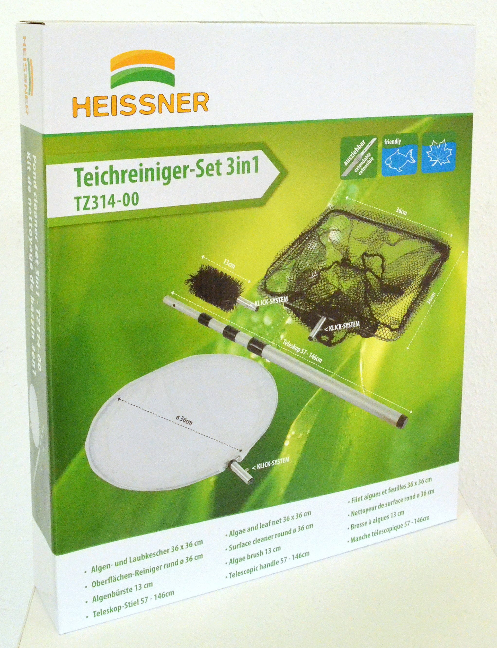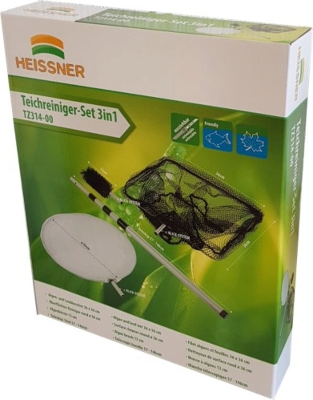 El set de limpieza 3 en 1 de HEISSNER es la solución ideal para el mantenimiento rápido y sencillo de estanques y piscinas pequeños y medianos. Gracias a sus tres accesorios especializados y a su mango telescópico ajustable, siempre dispondrás de la herramienta adecuada para cada tipo de suciedad. Hojas flotantes, algas en las paredes o impurezas gruesas pueden eliminarse fácilmente con un práctico sistema.