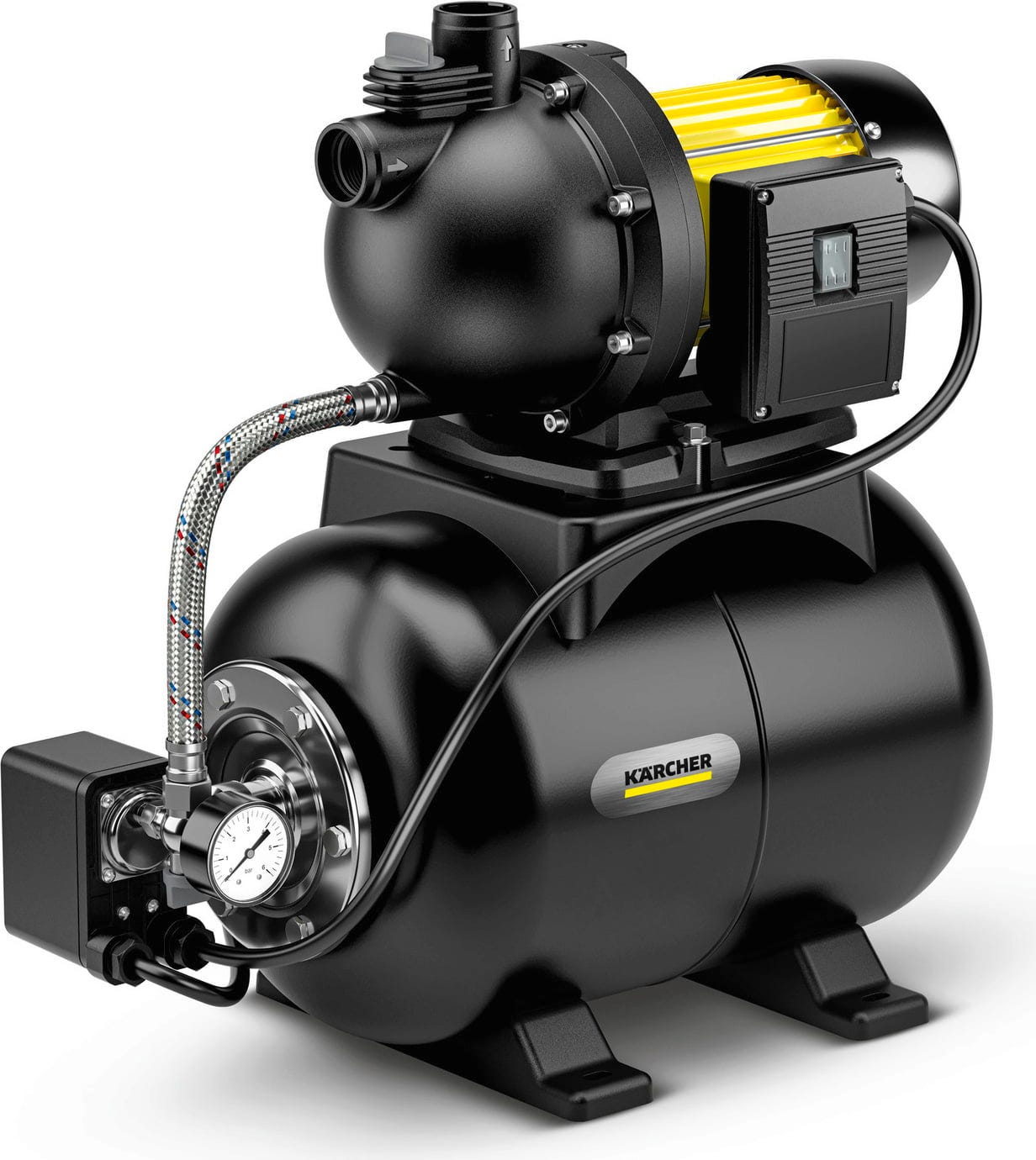 El depósito de presión integrado de 24 litros garantiza una presión uniforme en la instalación de agua doméstica y reduce los encendidos y apagados frecuentes de la bomba. De este modo, el sistema puede utilizarse de forma fiable tanto para la cisterna del WC como para la lavadora o para abastecer ducha y jardín. Con una altura de aspiración de hasta 8 m, la instalación es ideal para aprovechar agua de pozo en casa o agua de cisterna en la vivienda. Componentes robustos de la bomba, protección térmica integrada y una válvula antirretorno garantizan un funcionamiento seguro y duradero en el uso diario.
