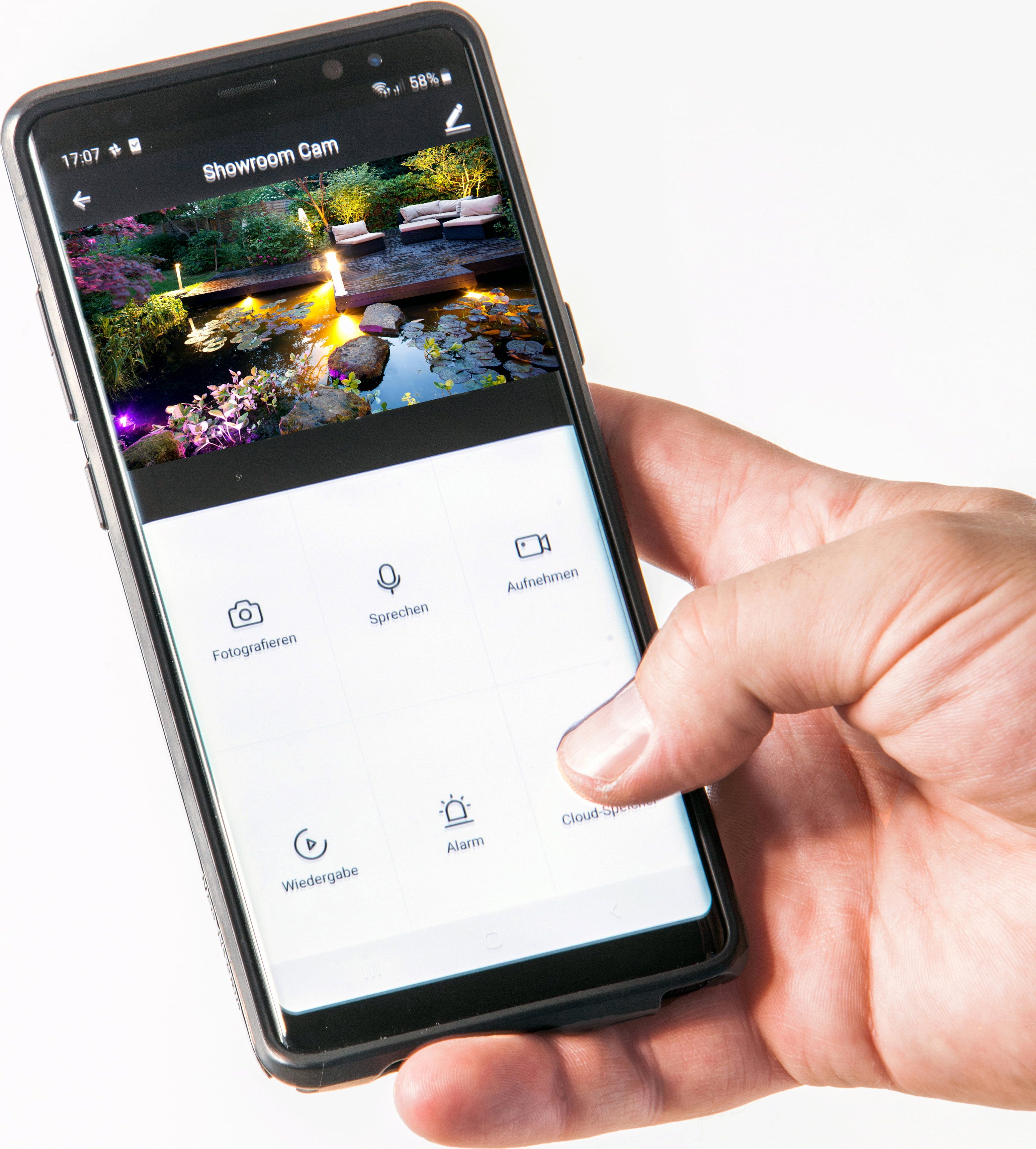 La HEISSNER Smart Garden Cam permite la vigilancia en tiempo real de alta resolución de la zona exterior directamente desde tu smartphone. Gracias a la función de visión nocturna automática, todos los detalles permanecen visibles incluso en la oscuridad. El sistema está equipado con un micrófono y un altavoz y se puede integrar perfectamente en entornos domésticos inteligentes comunes como Alexa o Google Home. Un sensor de movimiento integrado con notificaciones push y una ranura para tarjetas SD opcional garantizan la máxima seguridad y el control total de la zona ajardinada.