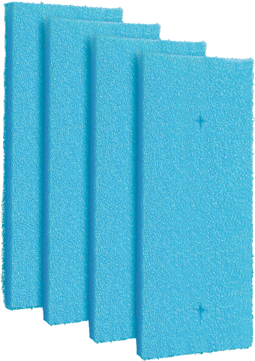 Las esponjas filtrantes azules representan el verdadero corazón de la limpieza. Su estructura fina y porosa realiza una filtración mecánica, reteniendo de forma fiable las partículas gruesas y los residuos en el agua.