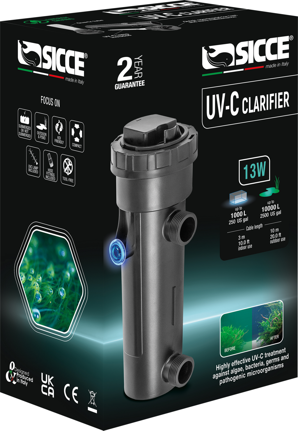 La instalación es fácil: gracias a los adaptadores de manguera incluidos, puedes conectar rápidamente el clarificador a tu bomba o filtro externo. El mantenimiento también es sencillo: la tapa se abre fácilmente para limpiarlo y se vuelve a cerrar en un abrir y cerrar de ojos. Diga adiós al agua turbia y a los invitados no deseados en su acuario o estanque: ¡con el clarificador UV-C Sicce, el agua vuelve a estar clara de forma rápida y segura!