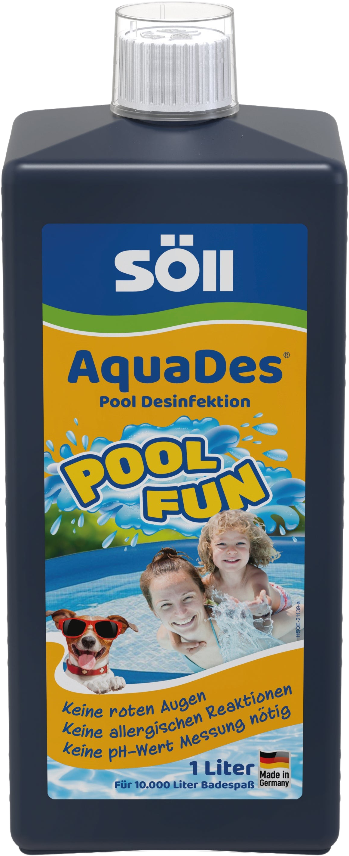 AquaDes de Söll es el desinfectante del verano El producto puede utilizarse en piscinas pequeñas, piscinas infantiles y spas y es eficaz contra bacterias, hongos y esporas. AquaDes sólo contiene pequeñas cantidades de cloro, pero es esta cantidad la que tiene un efecto más duradero que el cloro concentrado. La consistencia líquida del producto hace que su uso sea un juego de niños, sin necesidad de medir previamente el valor de pH del agua.