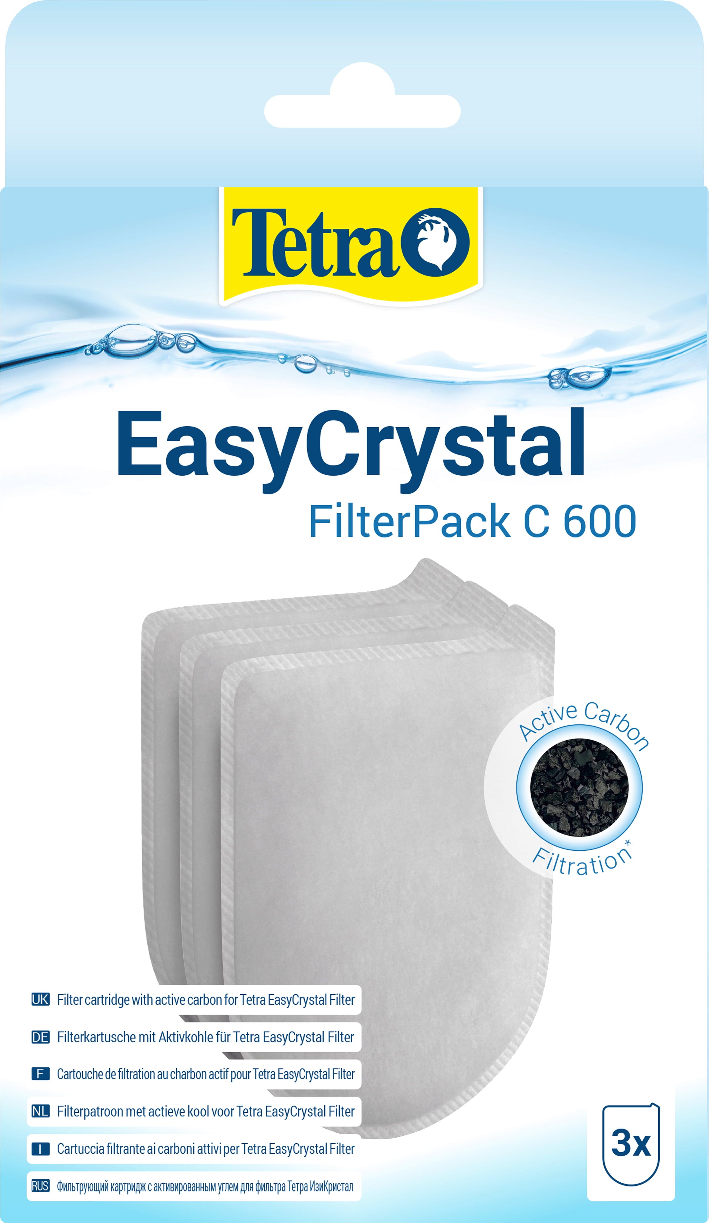 Gracias al carbón activo, el Tetra EasyCrystal FilterPack C 600 se utiliza para el tratamiento químico del agua en acuarios con un volumen de 50-100 litros y está diseñado para usarse en el Tetra EasyCrystal FilterBox 600.