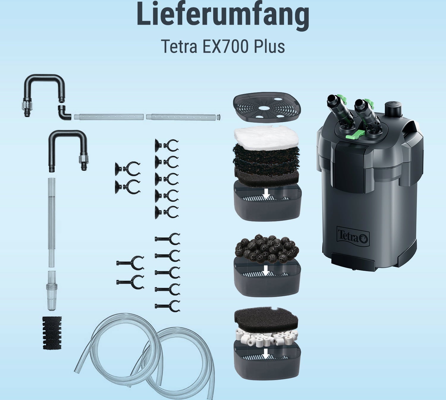 Oliver Knott recomienda: Con el set completo Tetra EX Plus mejorado, adquieres un potente filtro externo y garantizas así excelentes condiciones de agua para tus peces y plantas. ¡Gracias al gran suministro, el filtro está inmediatamente listo para su uso!