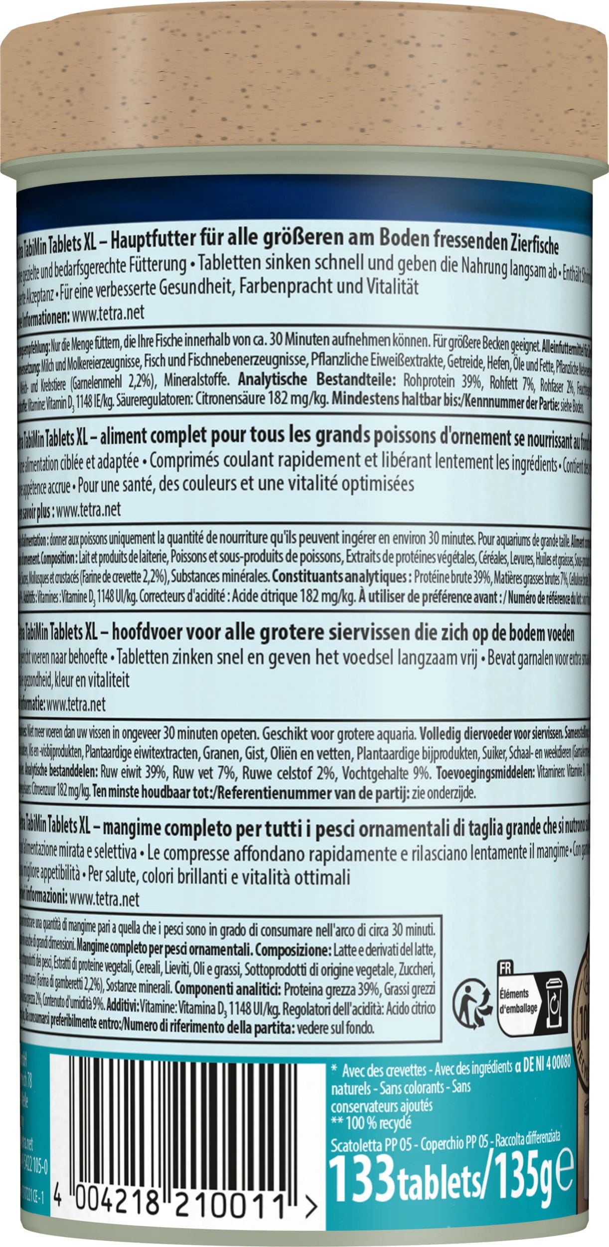 Los comprimidos Tetra TabiMin XL son comprimidos básicos para todos los peces ornamentales tropicales en el acuario de agua dulce que se encuentran en las zonas de agua más bajas y en el fondo y también están disponibles en una variedad de tamaños.
