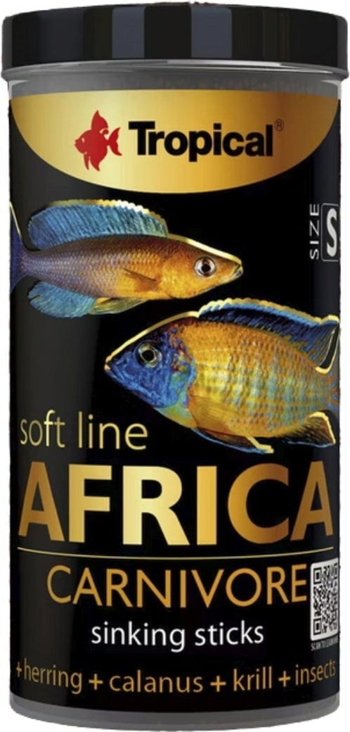 - Alimento blando en forma de gránulos que se hunden para peces africanos carnívoros y omnívoros
