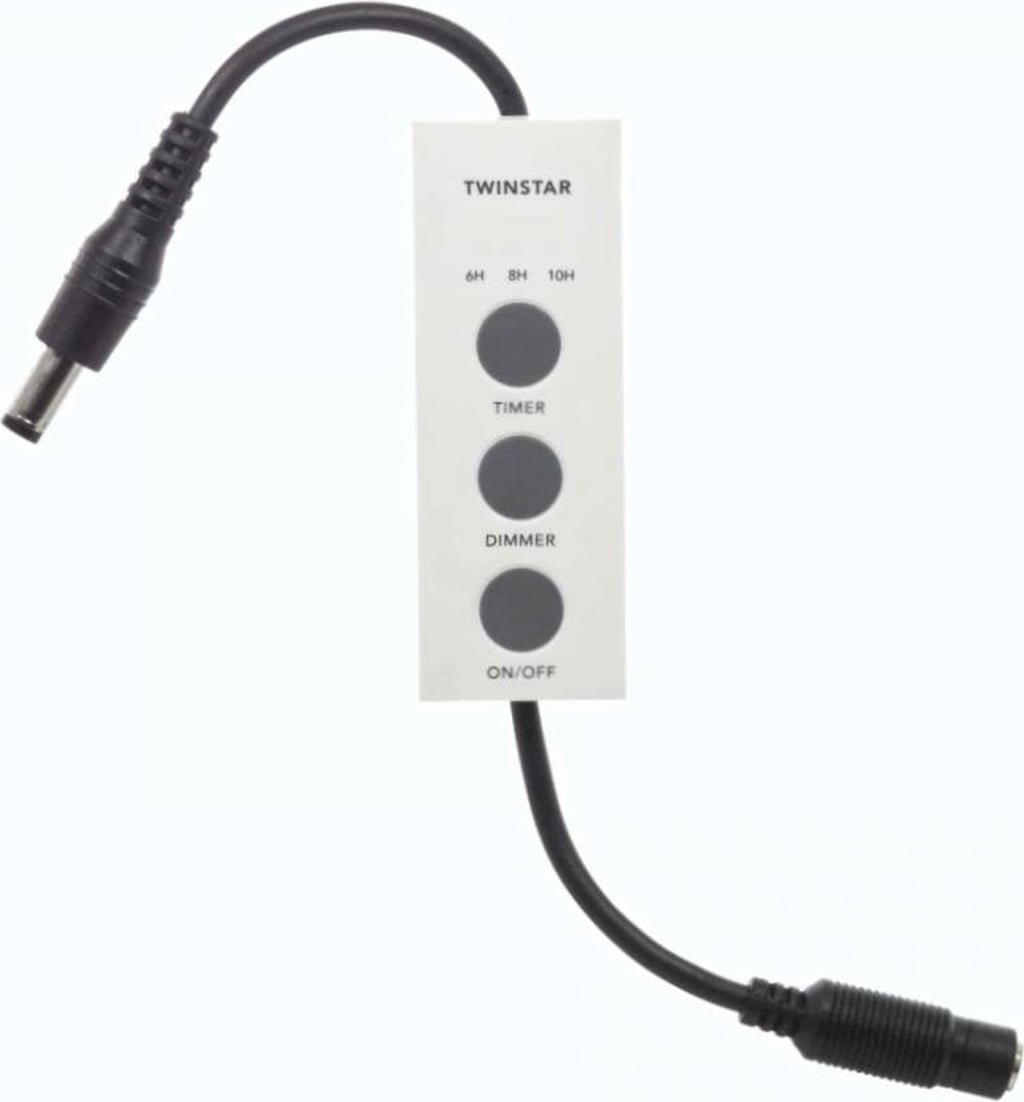 El dimmer Twinstar es un accesorio versátil adecuado para todos los LED Twinstar sin dimmer preinstalado (excepto Twinstar C III). La función de temporizador ofrece tres tiempos de funcionamiento diferentes de 6, 8 y 10 horas para una iluminación constante y fiable. El dispositivo dispone de siete niveles de brillo diferentes que se pueden ajustar fácilmente con sólo pulsar un botón. ¿Qué tal un suave amanecer y atardecer para empezar y terminar el día a la perfección? El regulador ofrece una función automática de salida y puesta del sol que dura 10 minutos. La iluminación puede encenderse o apagarse rápidamente mediante un interruptor de encendido/apagado.